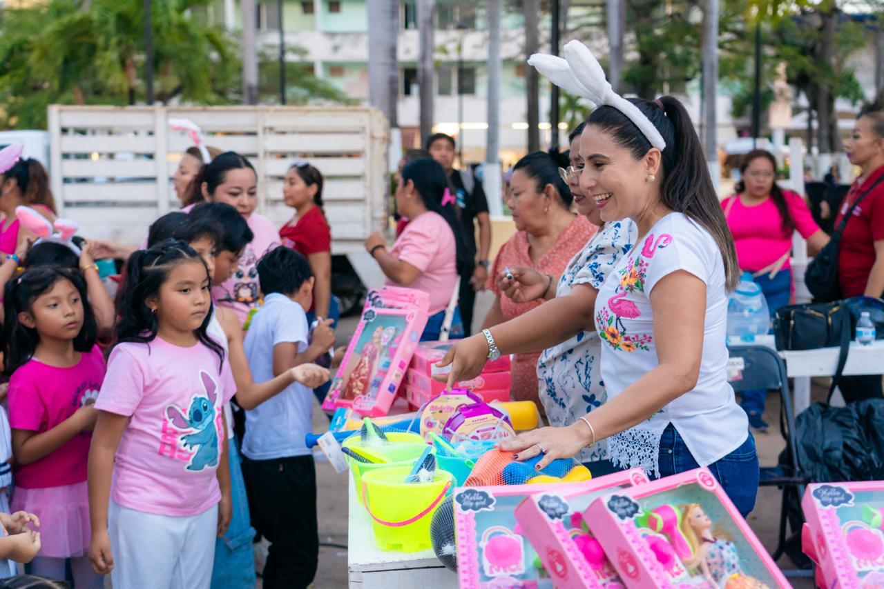 Asimismo, el DIF organizó un rally con cinco estaciones, donde las niñas y niños realizaron dinámicas como transportar globos de colores, buscaminas, memorama con conos, ensarta la pelota y atrapa la pelota. Los huevos de Pascua contenían mensajes de valores y dulces, mientras que quienes encontraron los huevos de oro recibieron un premio especial. La tarde se llenó de alegría con pinta caritas, show de payasos y la ambientación a cargo de los talleres de música de la subdirección de Cultura; además, se proyectó la película “Hop: Rebelde sin Pascua”.