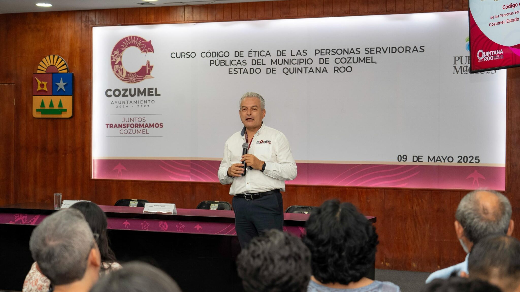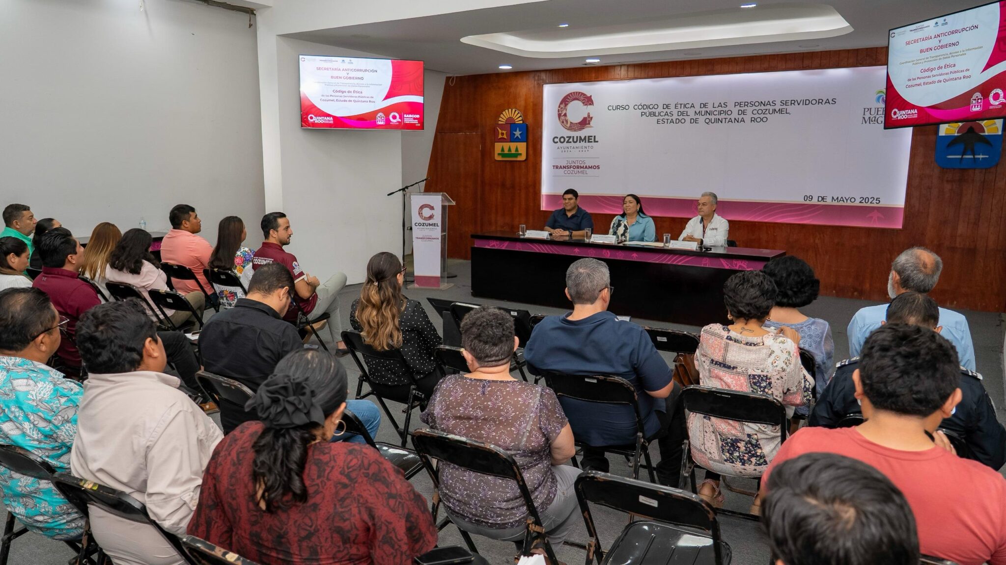 La mañana de éste viernes, en el salón Municipios, se impartió el curso “Código de Ética de las Personas Servidoras Públicas del Municipio de Cozumel, Quintana Roo”, como parte de una iniciativa coordinada entre el Ayuntamiento de Cozumel que preside José Luis Chacón Méndez y la Secretaría Anticorrupción y Buen Gobierno del Estado de Quintana Roo, a través del Órgano Interno de Control.