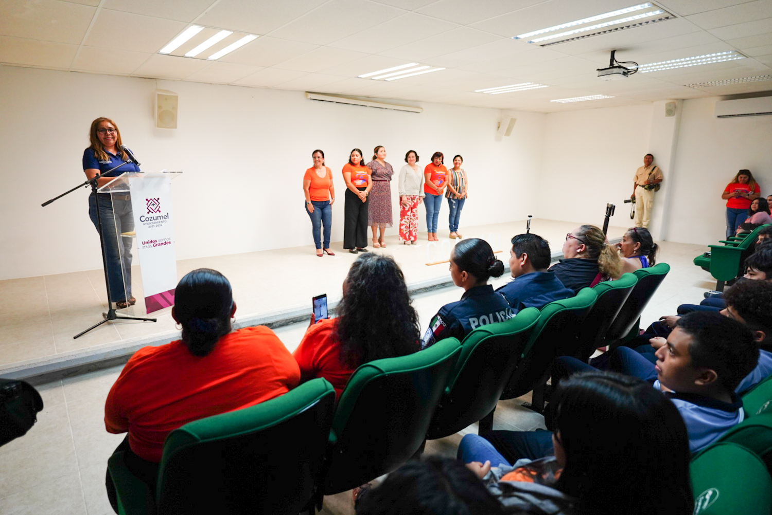 En compañía de la presidenta honoraria del sistema para el Desarrollo integral de la familia (DIF) Cozumel, Susana del Mar Coral Villanueva, la munícipe destacó que el “Día Naranja” es propicio para sensibilizar y concientizar a la comunidad para disminuir la violencia hacia las mujeres y las niñas, y como lo hemos organizado los 25 de cada mes, este día el gobierno municipal ha organizado actividades que buscan generar conciencia pública para lograr el acceso de las mujeres y niñas a una vida libre de violencia.