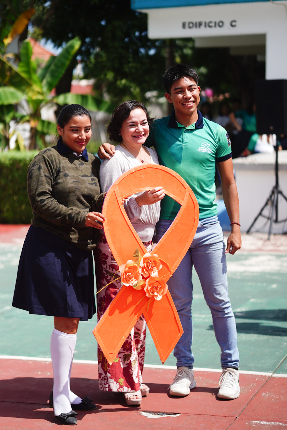 Cabe destacar que en el marco de este evento en el que también estuvieron presentes, las regidoras Ángela del Socorro Carrillo Chulín, Fabiola Aisslin Chávez Brito y Genny Aracelly Martínez Koh, así como la directora del plantel Conalep Cozumel, Enna Zitta Barba Anduze, en la plaza cívica de la institución educativa se llevó a cabo el acostumbrado “Lazo naranja” con los alumnos y docentes, para posteriormente, escuchar en el auditorio la plática “Prevención de la violencia en el noviazgo” impartida por Elizabeth Mendoza Villegas y Francisco Moo Tamayo de la Secretaría de Seguridad Pública del Estado.