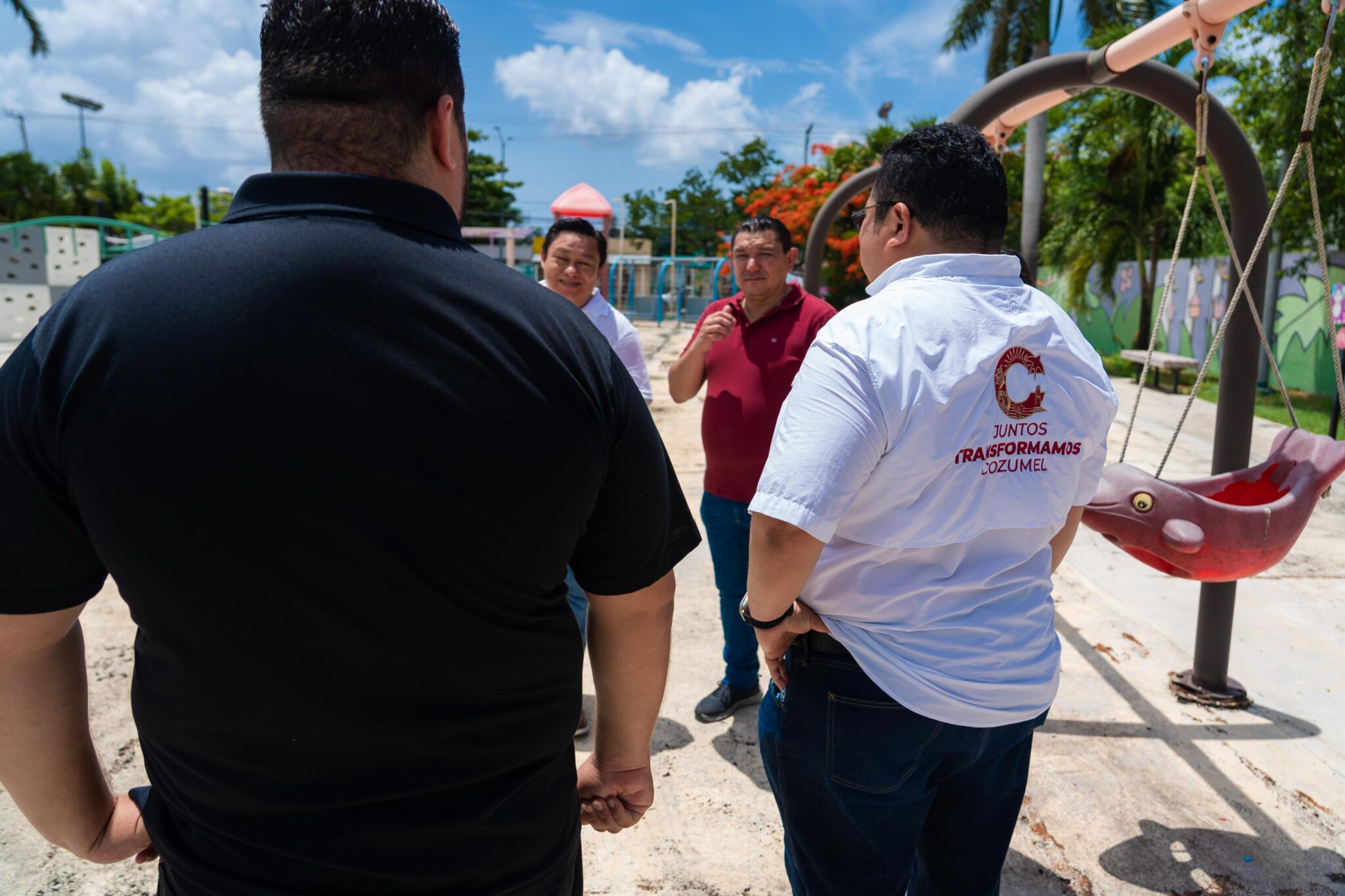 “Nos comprometimos a devolverle a la niñez, juventud y las familias enteras sus espacios de entretenimiento como son los parques de Cozumel, y hoy estamos enfocando nuestros esfuerzos en este espacio que era muy concurrido por las familias”, expresó Chacón Méndez.