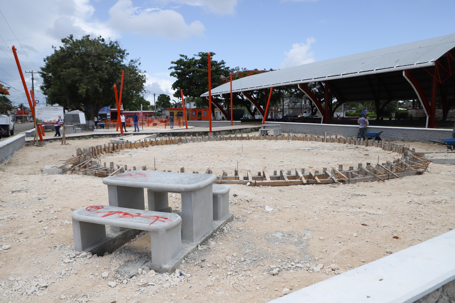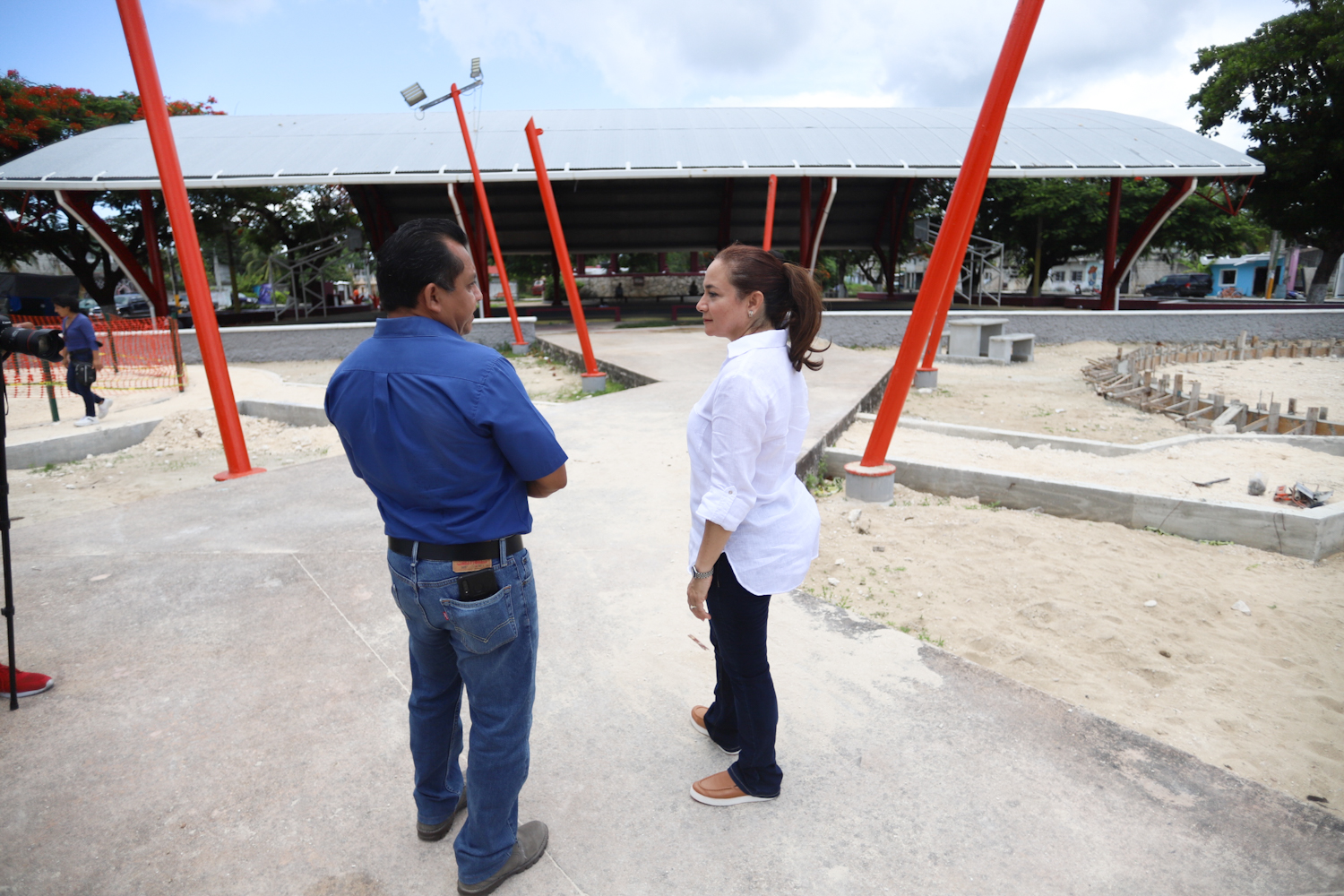 Asimismo, en el parque Municipio libre, la edil constató la obra de rehabilitación que consiste en la construcción de dos centros de juegos con andadores de piso de concreto estampado, reforestación, construcción de 14 mesas de picnic, suministro de 10 botes para basura, ocho bancas de aluminio, suministro de 4 lámparas, rehabilitación del domo con pintura de esmalte en la estructura metálica y cambio de canalones pluviales, donde se lleva al momento un avance del 45 por ciento.