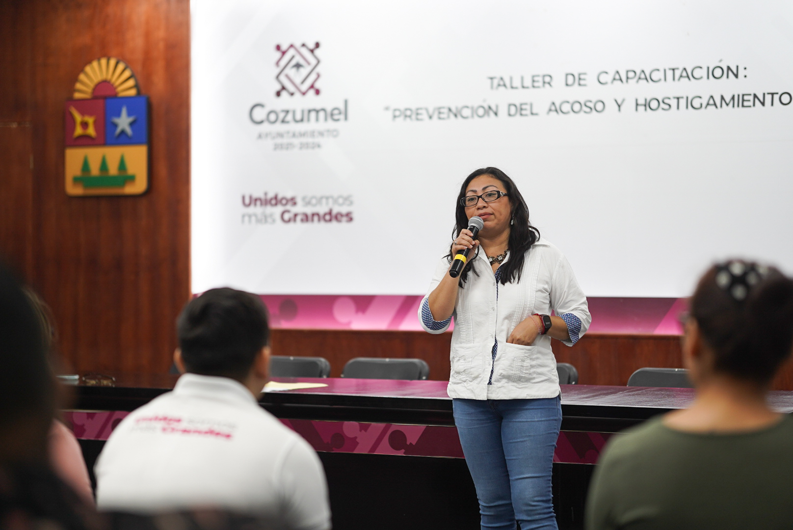 Sumándose al esfuerzo del Ayuntamiento de Cozumel para prevenir la violencia de género en la isla, el Instituto Quintanarroense de la Mujer (IQM) impartió en el salón municipios de Quintana Roo el taller “Prevención del Acoso y Hostigamiento Sexual” en el que participaron trabajadores de diferentes áreas del gobierno municipal.