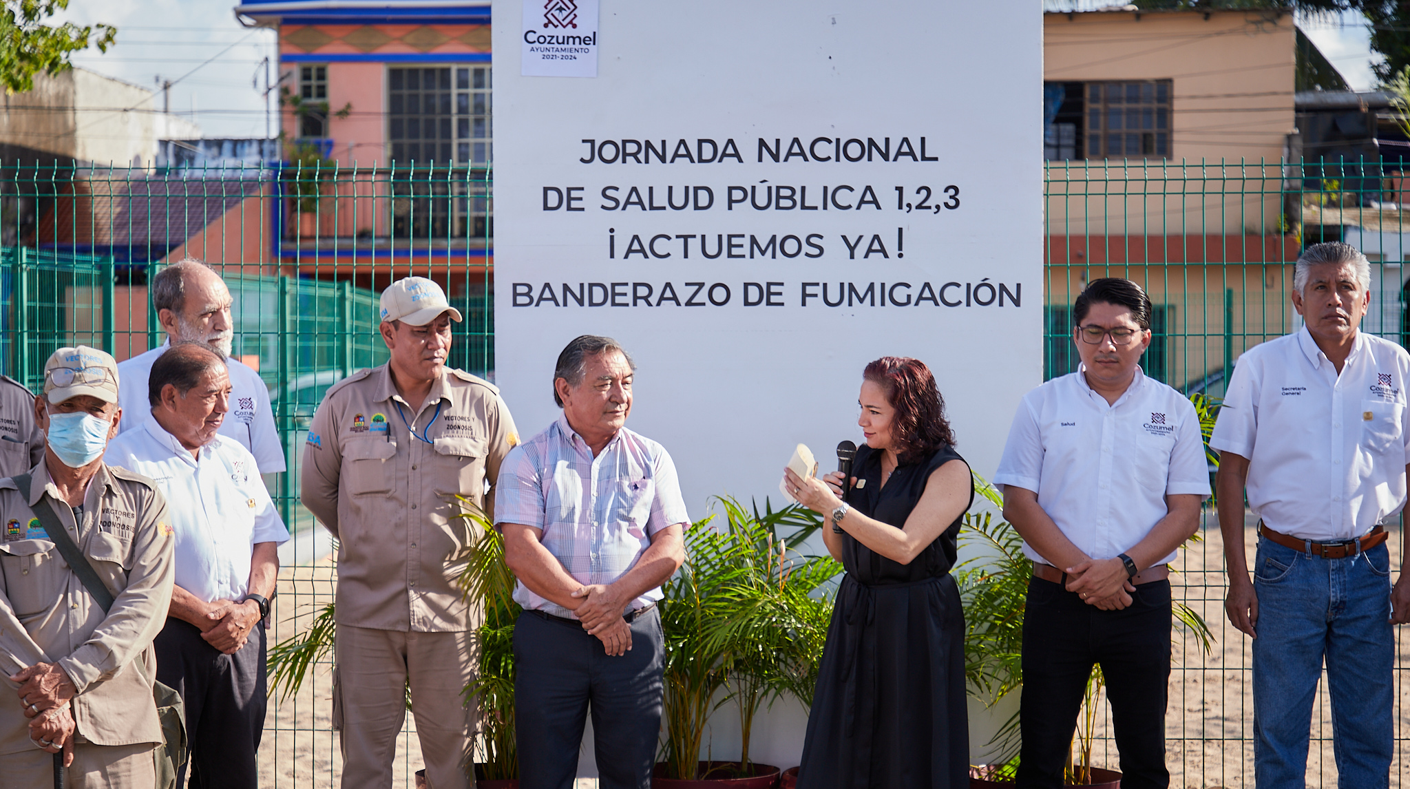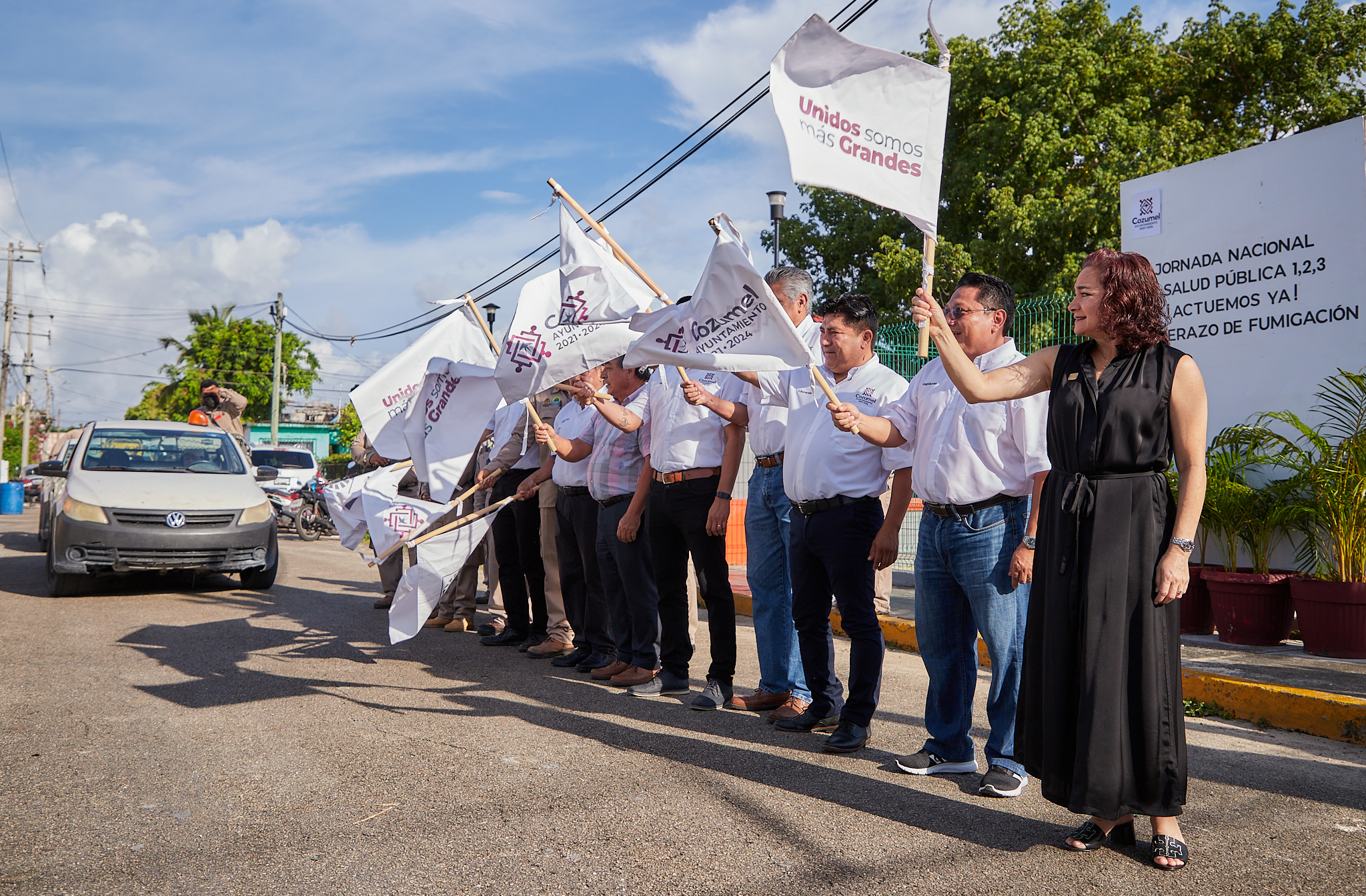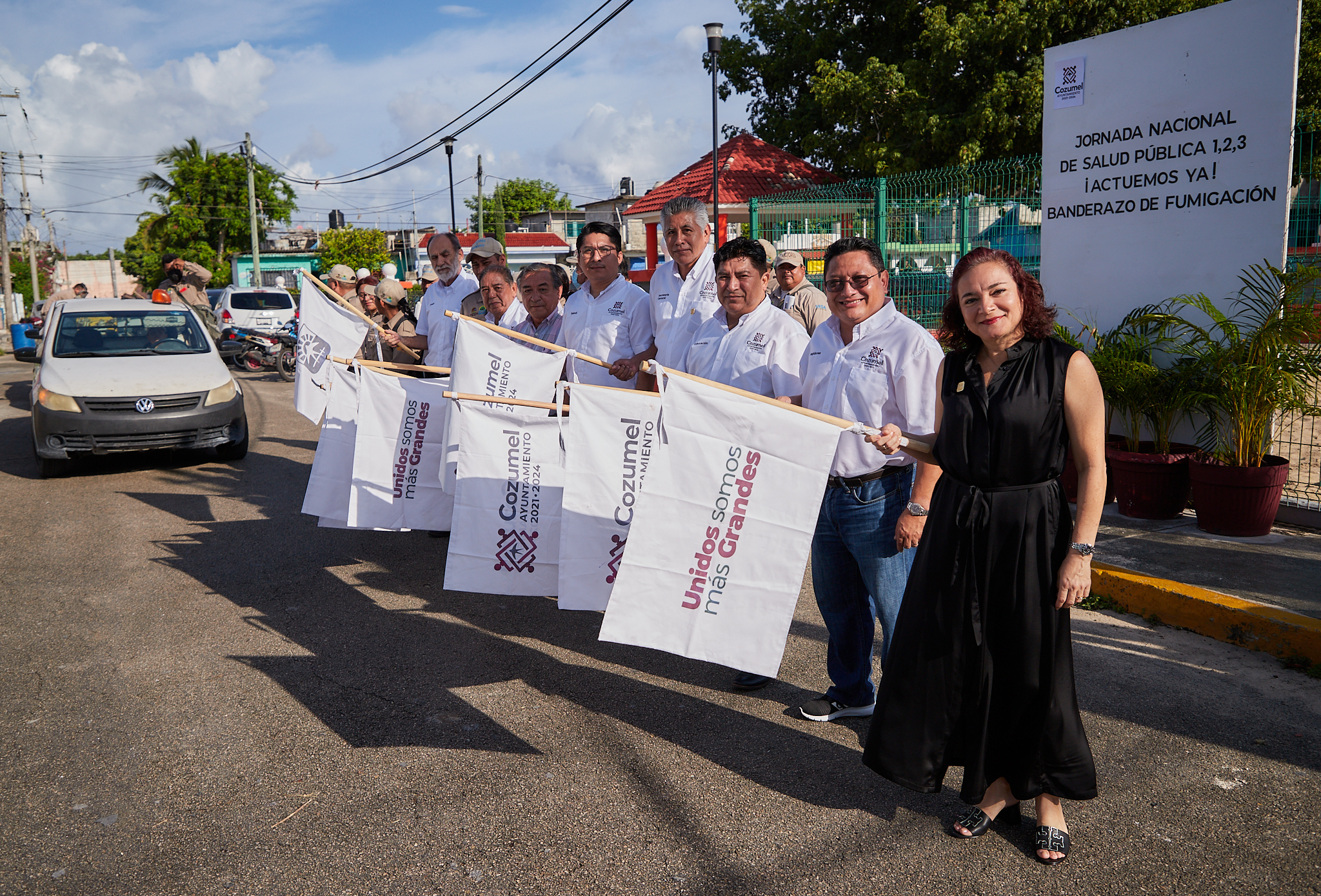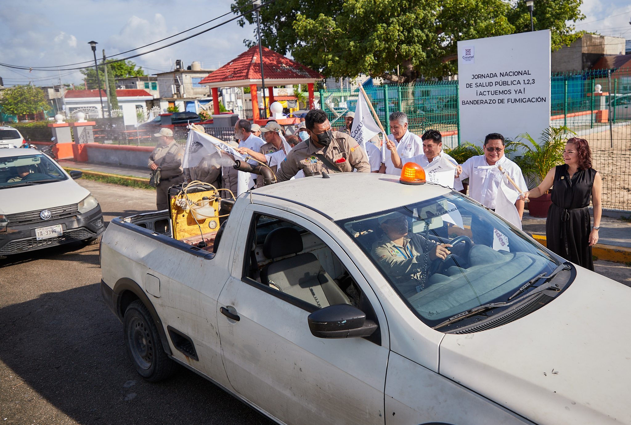 De manera simbólica la presidenta municipal Juanita Alonso Marrufo dio el banderazo de inicio de las acciones relacionadas a la jornada nacional por la que felicitó y agradeció a las dependencias involucradas por el trabajo coordinado a favor de la salud, con la recolecta de cacharros, nebulización, abatización y control larvario.