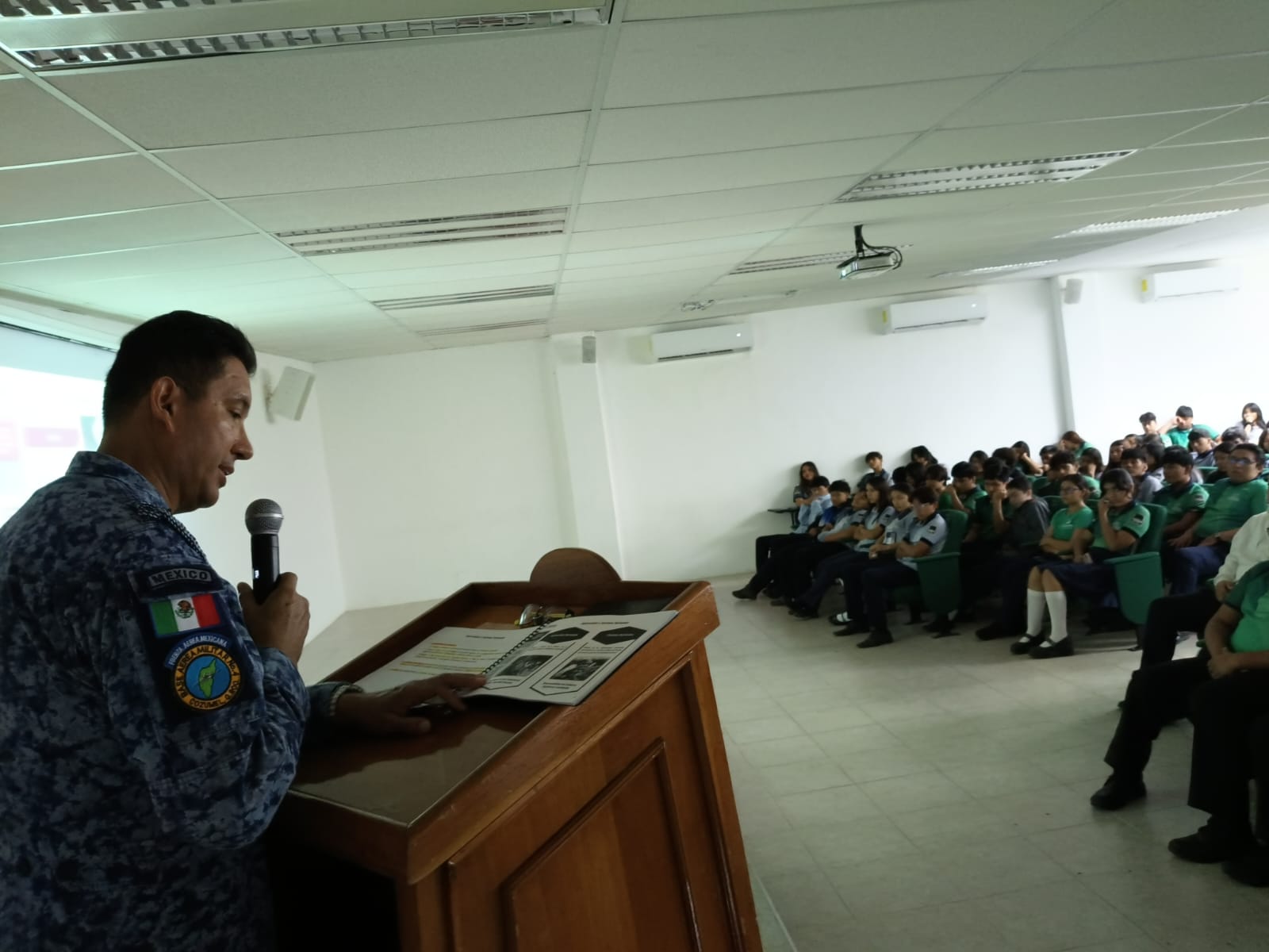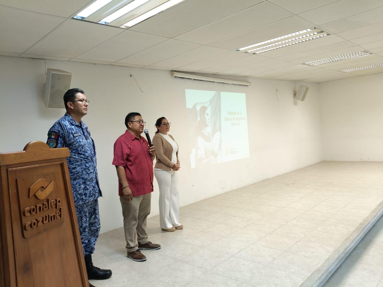 Con el objetivo de fortalecer la prevención y reducir situaciones de riesgo entre la comunidad estudiantil, el Gobierno Municipal de Cozumel, encabezado por el presidente, José Luis Chacón Méndez, con apoyo de la Base Aérea Militar (B.A.M. No. 4) llevó a cabo la charla “Difusión de la Cultura de Seguridad Nacional” dirigida a las y los alumnos del plantel CONALEP de la isla.