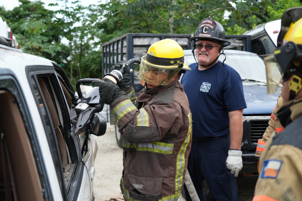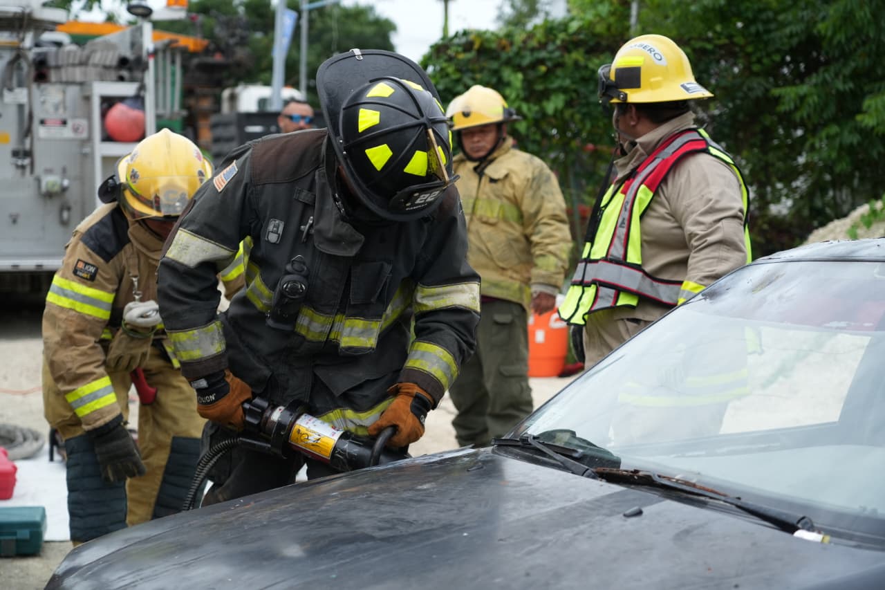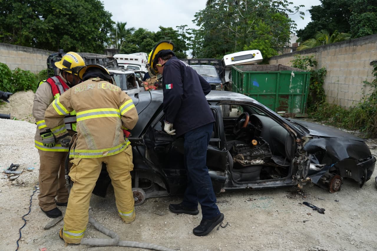 La capacitación se realizó en las instalaciones de Baaxa Reciclajes WT Cuzamil, donde 30 bomberos cozumeleños participaron en una práctica integral que incluyó protocolos reales de rescate durante accidentes vehiculares con personas prensadas. El director de Protección Civil, Bomberos y Guardavidas, Alfredo Arellano Villaseñor, explicó que este entrenamiento permite reforzar conocimientos y adoptar nuevas técnicas que cada año se perfeccionan, garantizando intervenciones más rápidas, seguras y efectivas en beneficio de la ciudadanía.