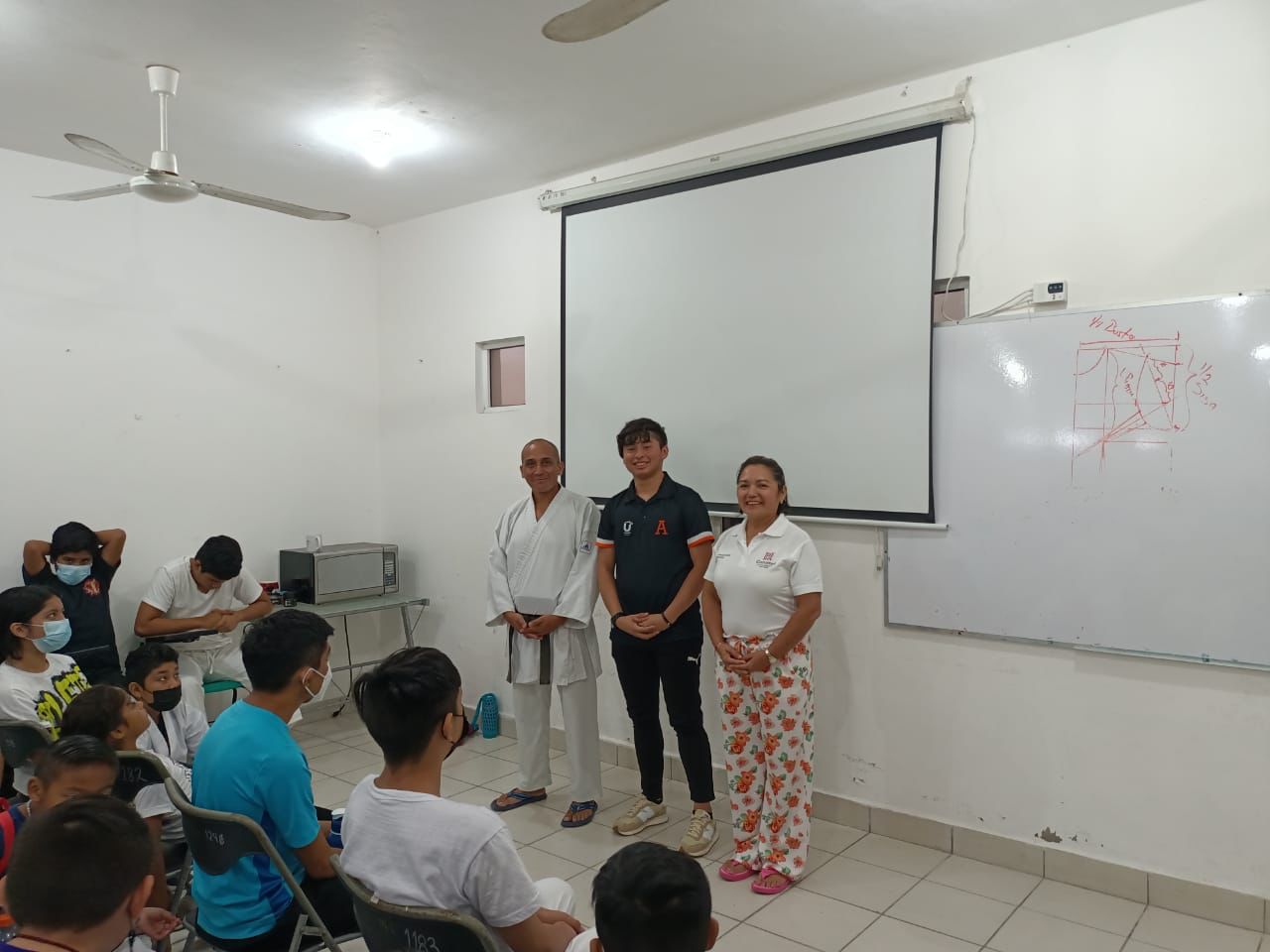 Más de 50 aprendices de karate que acuden a las clases impartidas por el Gobierno Municipal a través del Centro de Desarrollo Comunitario (CDC) Froylán López Carrillo, recibieron entusiasmados al campeón nacional de Shito-Ryu, el karateka, Diego Caballero Medina, quien les ofreció sus experiencias a través de una amena plática.