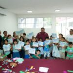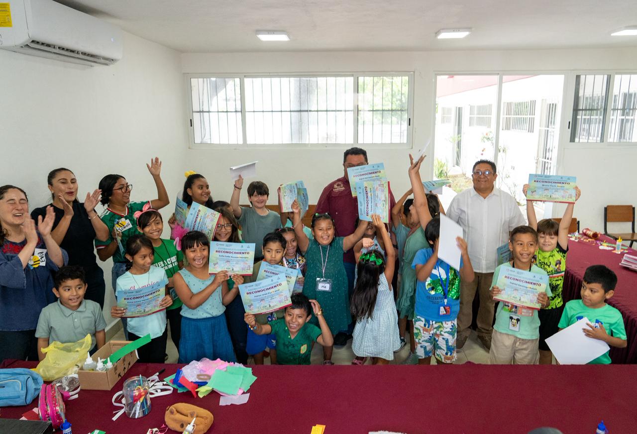 Con la participación de 30 niñas y niños, el presidente municipal José Luis Chacón Méndez clausuró el curso “En primavera la biblioteca te espera” “Cuentos que florecen”, el cual tuvo como objetivo fomentar el aprendizaje y amor por la lectura donde las y los participantes disfrutaron al máximo una semana de actividades enfocadas en la lectura, la escritura y el conocimiento del entorno natural de la isla.