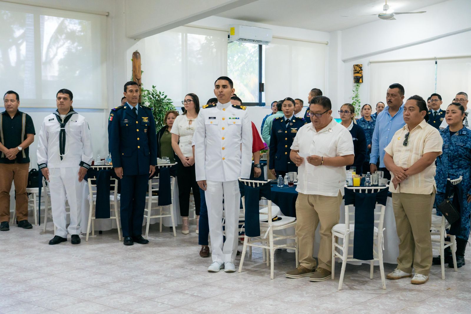 A la ceremonia asistieron generales, jefes y oficiales en situación de retiro, así como representantes del Aeropuerto Internacional de Cozumel, capitanes, oficiales, tropas y marinería pertenecientes al Ejército Mexicano, Fuerza Aérea Mexicana, Armada de México y Guardia Nacional.