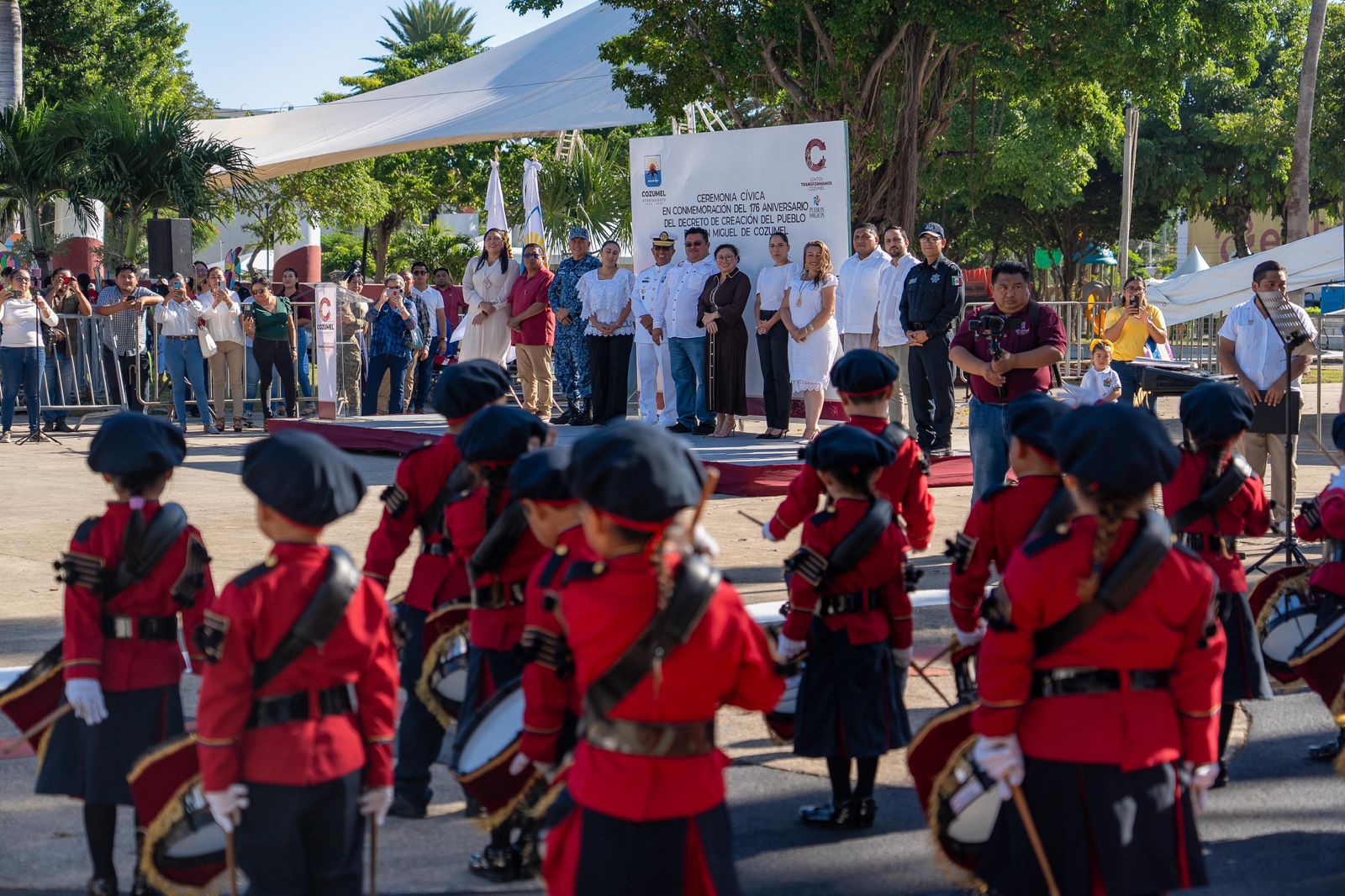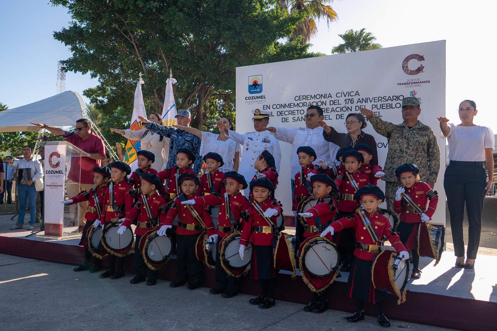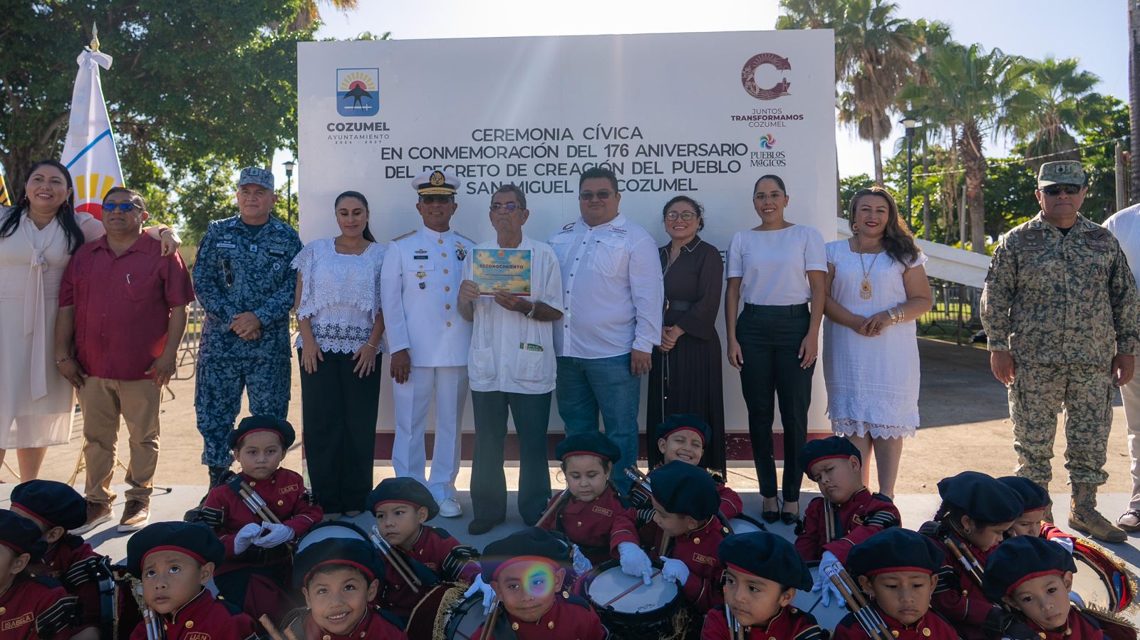 El presidente municipal, José Luis Chacón Méndez, encabezó la ceremonia cívica para conmemorar el 176 Aniversario del Decreto de Creación del Pueblo de San Miguel de Cozumel, en un evento realizado en la explanada del parque Quintana Roo, donde autoridades, estudiantes y ciudadanos se reunieron para honrar la historia y la identidad de la isla.