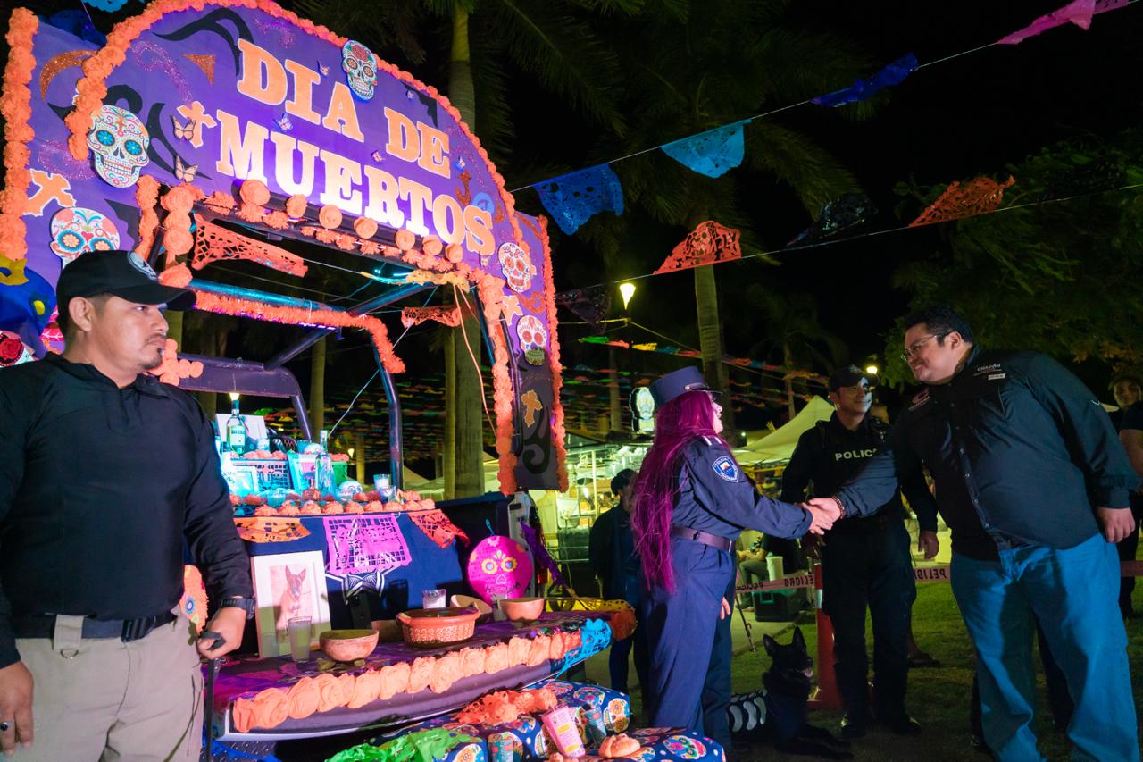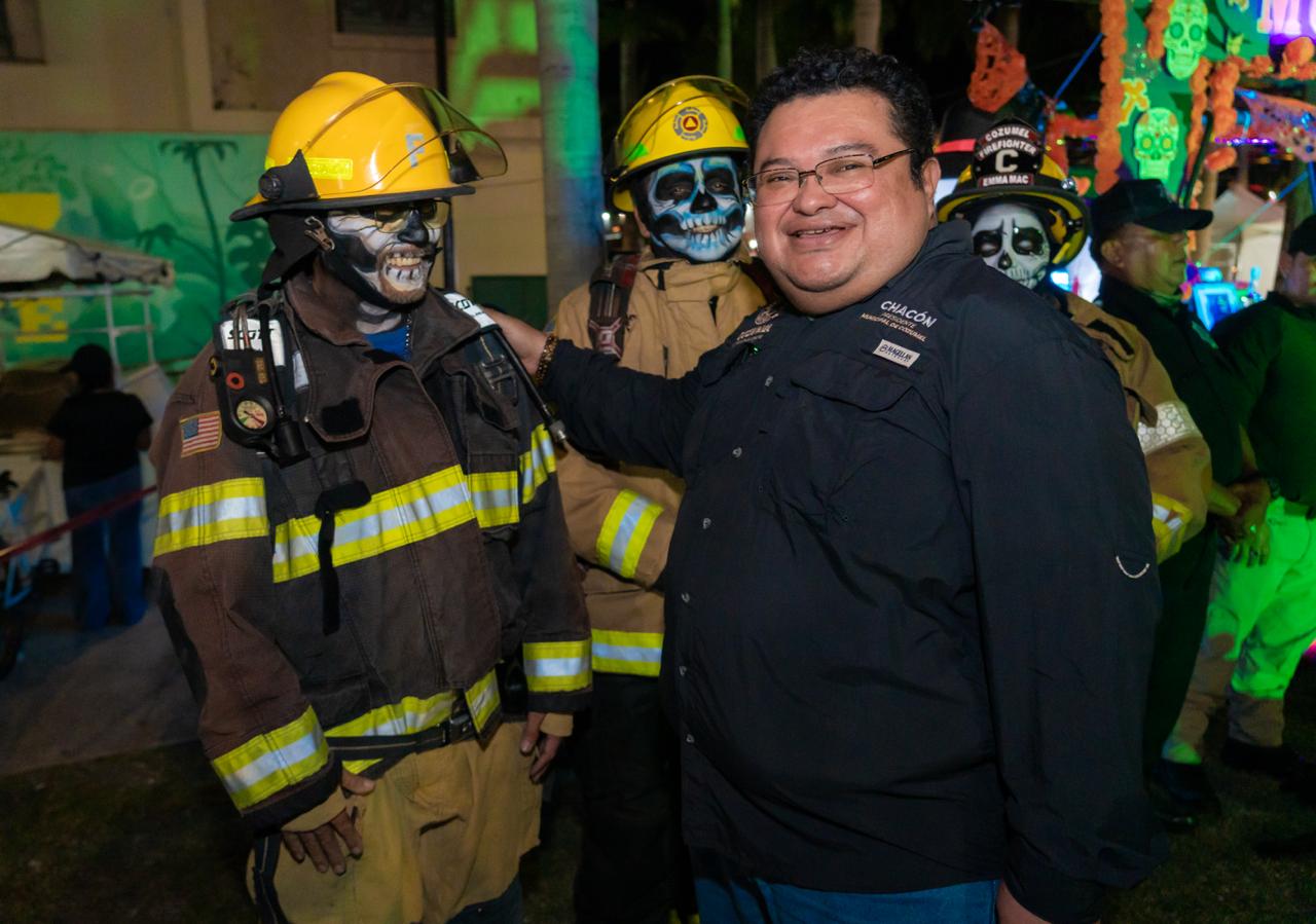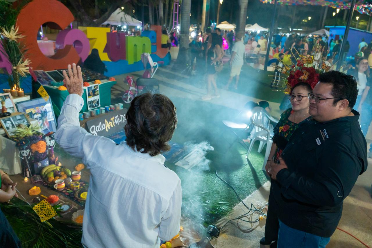 En compañía de su esposa, la presidenta del Sistema para el Desarrollo Integral de la Familia (DIF) Cozumel, Diana Sosa Blanco, así como parte del gabinete municipal, el edil visitó el altar monumental de Día de Muertos del Ayuntamiento, y posteriormente, recorrieron la exhibición de altares en la que participaron las direcciones de Servicios Públicos, Oficialía Mayor, Seguridad Pública, Bomberos, Protección Civil, Contabilidad, Obras Públicas, Salud, Desarrollo Urbano, Sistema DIF, Recursos Humanos, Secretaría Técnica, Contraloría, Desarrollo Social, además del Sindicato Revolucionario de Trabajadores (SRT), Colibrí y Galo Art Estudio, y la Red Mundial de Jóvenes Políticos, entre otros, quienes se lucieron con su creatividad.
