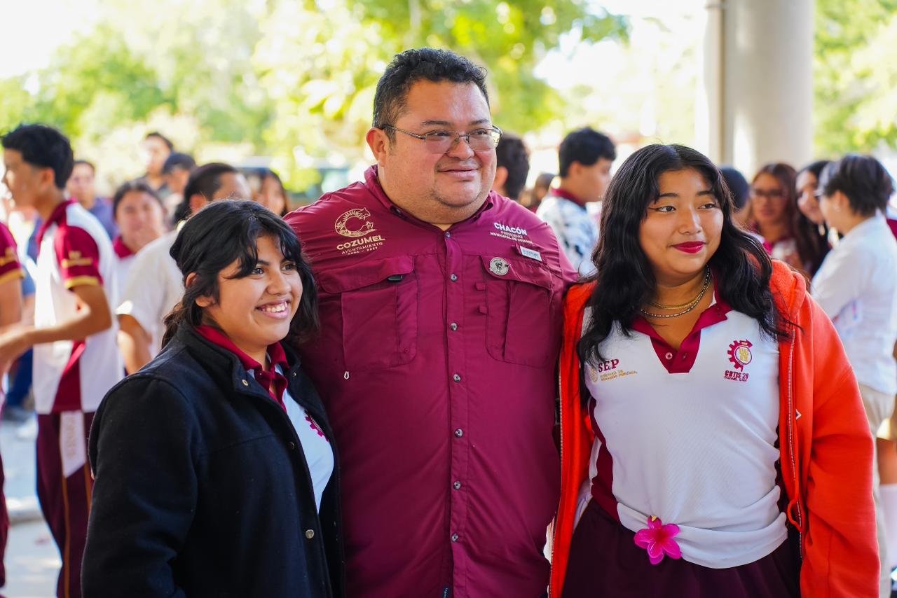 El presidente municipal, José Luis Chacón Méndez, invitó a las y los jóvenes cozumeleños de las escuelas CONALEP, CBTIS y Bachilleres a ser parte del gran concierto de cierre del Carnaval Cozumel 2026, con la presentación estelar de Manuel Turizo, que se llevará a cabo el próximo 16 de febrero en las instalaciones de APIQROO, donde contarán con un espacio especial pensado para que disfruten de una manera sana, segura y ordenada.