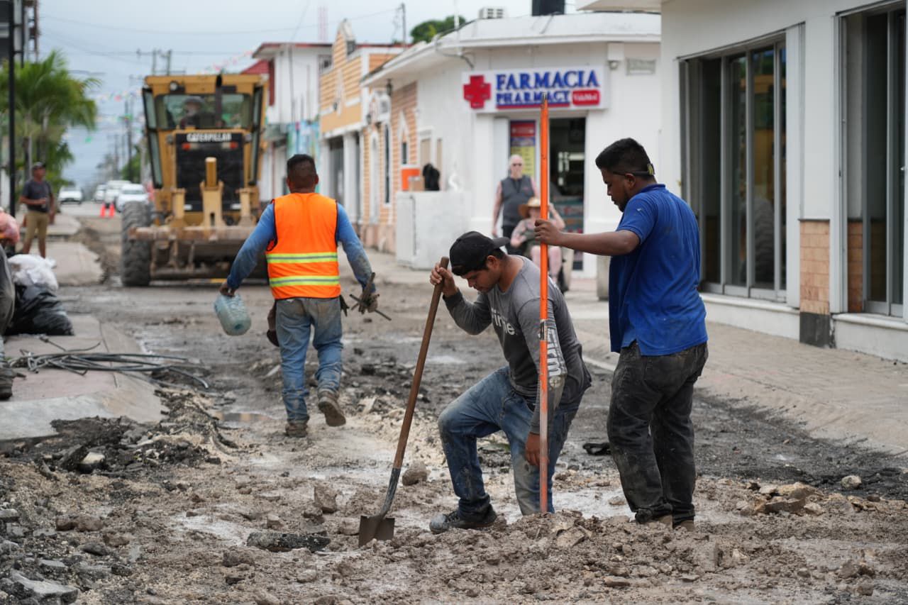 En esta actividad participaron también Andrés Catzim, director de Obras Públicas, y Elías Farah, director de Turismo y Desarrollo Económico. La obra se lleva a cabo en la calle 2 Norte, entre el malecón y la 10ª Avenida, y se estima que quedará concluida en aproximadamente 28 días, aunque se prevé una apertura parcial para motos, bicicletas y vehículos pequeños dentro de 15 días.