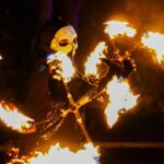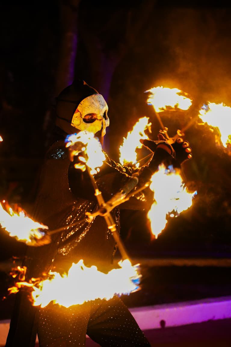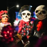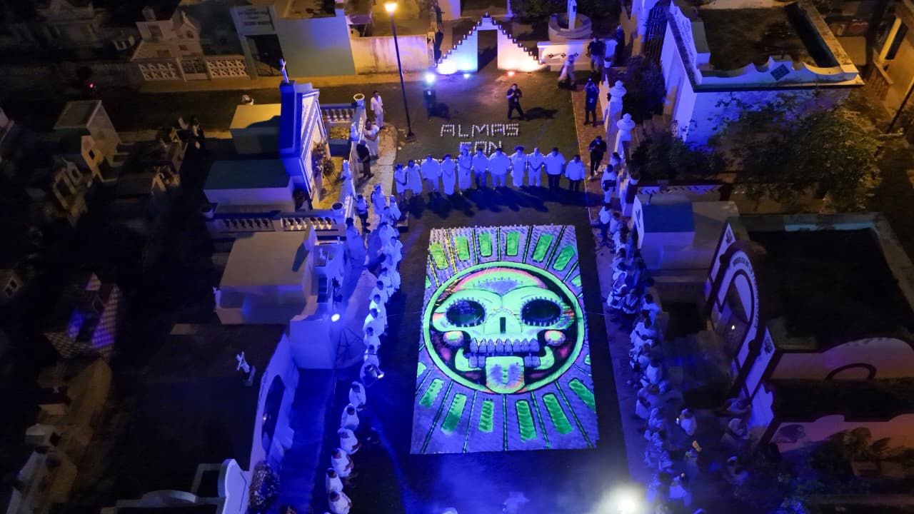 La actividad comenzó con una ceremonia prehispanica de purificación a cargo del grupo Jul Kiin en el panteón San Miguel, donde se realizó el tradicional encendido de las veladoras del monumental cráneo y los asistentes disfrutaron la proyección del video mapping en el arco de acceso del panteón, amenizado por la voz de Lulú Rodríguez, para posteriormente dar dar paso a la procesión de ánimas.