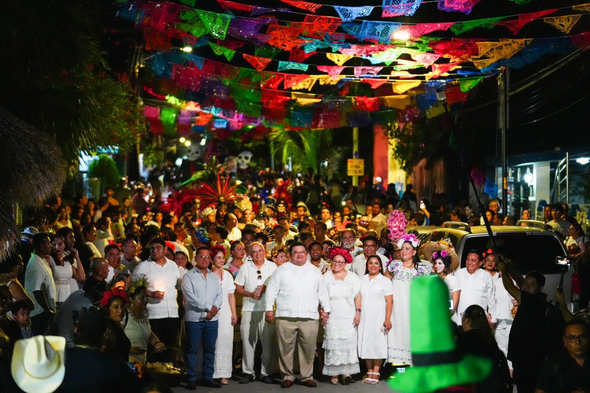 También estuvo presente, la secretaria general, Margarita Vázquez Barrios; el contralor, Fidencio Balam; el director de Desarrollo Social, Pedro Leonel Yam Chan; la directora de Eventos, Carmen Moreno; la subdirectora de Cultura, Cristina Santana; el tesorero, Javier Villanueva Catzín; la oficial mayor, Azalea Morales Mejía, así como regidores, comandantes de las fuerzas armadas, la catrina y otras personalidades.