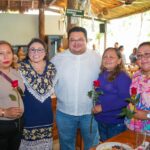 Durante el desayuno, el munícipe Chacón Méndez saludó y entregó una flor a cada mamá, las felicitó y convivió con ellas.