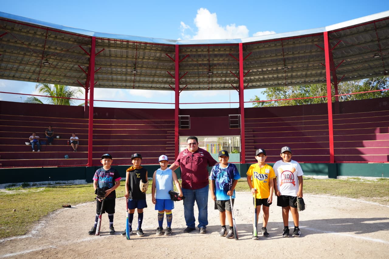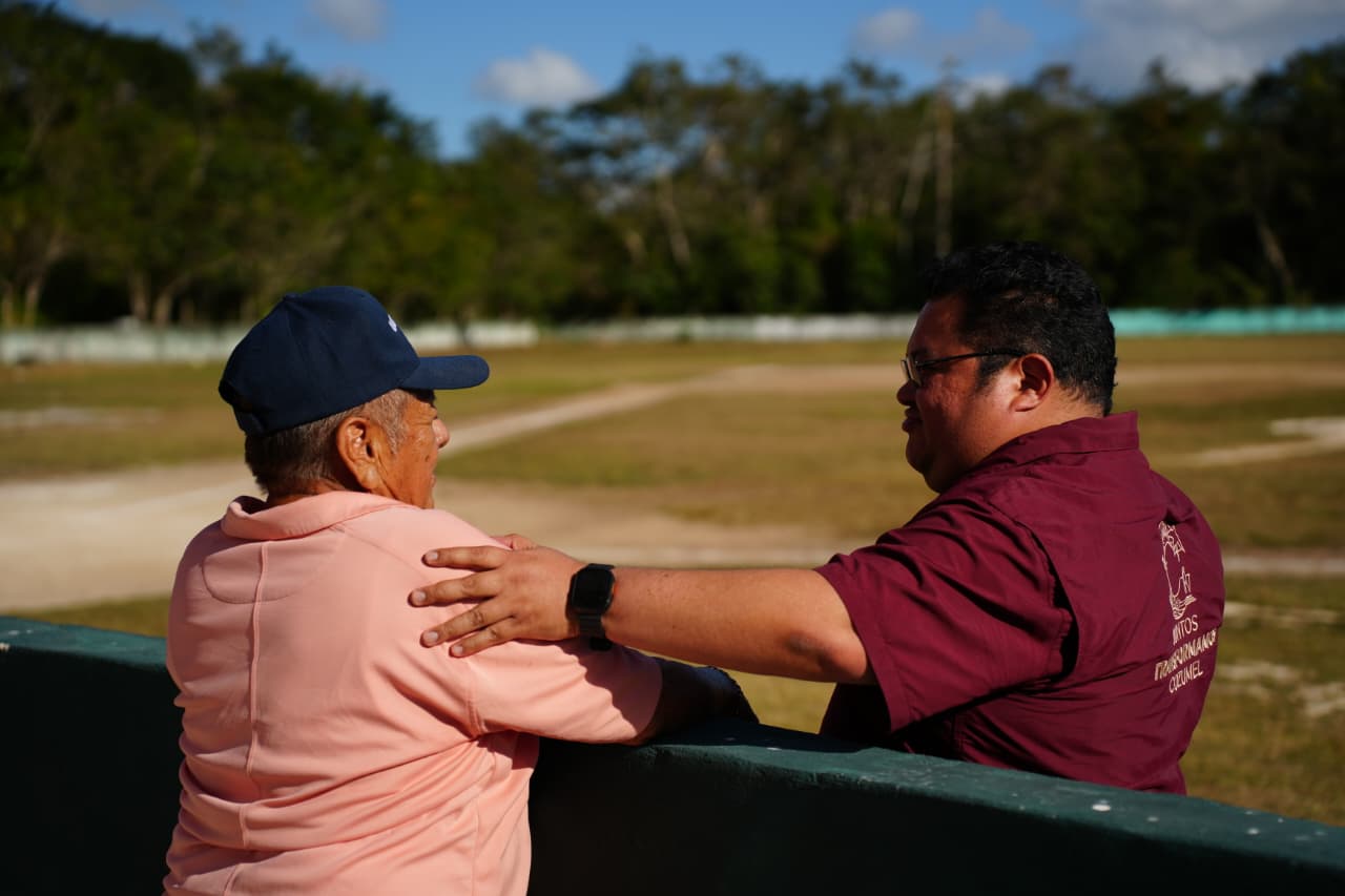 Durante la entrega, el presidente municipal convivió con niñas y niños del equipo Taxistas Juniors, con quienes compartió algunas anécdotas sobre la historia del béisbol en Cozumel y la trayectoria de Fidel Villanueva, reconocido por impulsar durante muchos años el deporte en la isla, especialmente el béisbol infantil. Además, el edil entrenó por unos momentos con los pequeños beisbolistas, quienes estrenaron este renovado espacio deportivo.