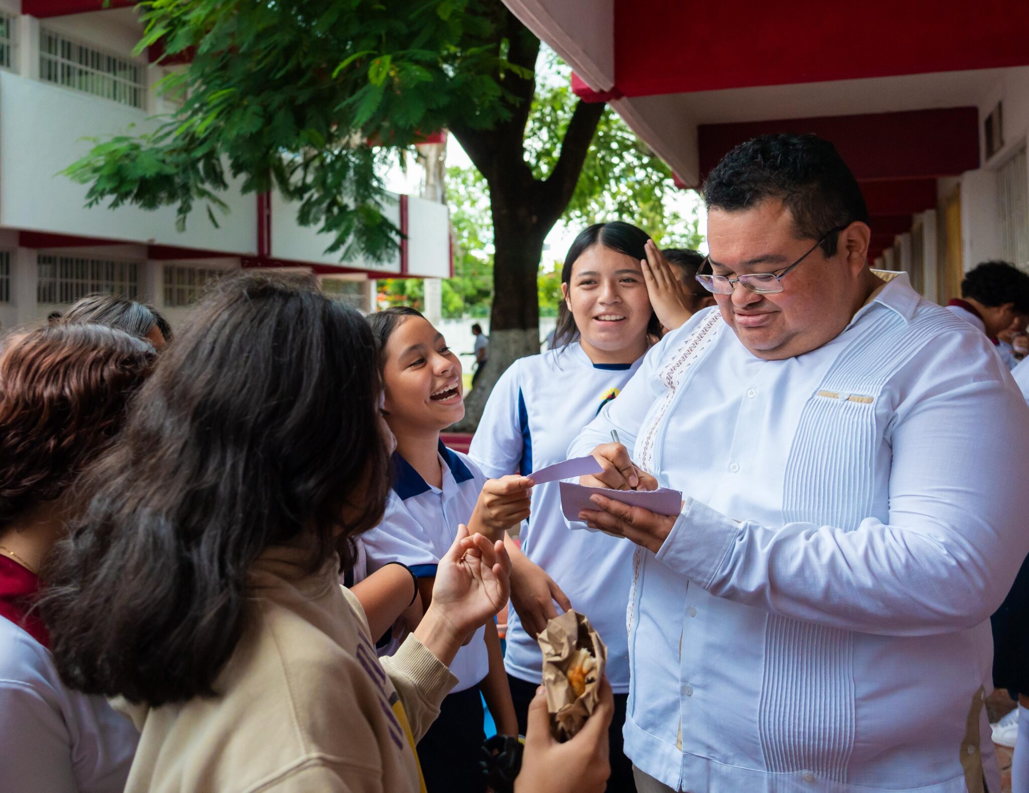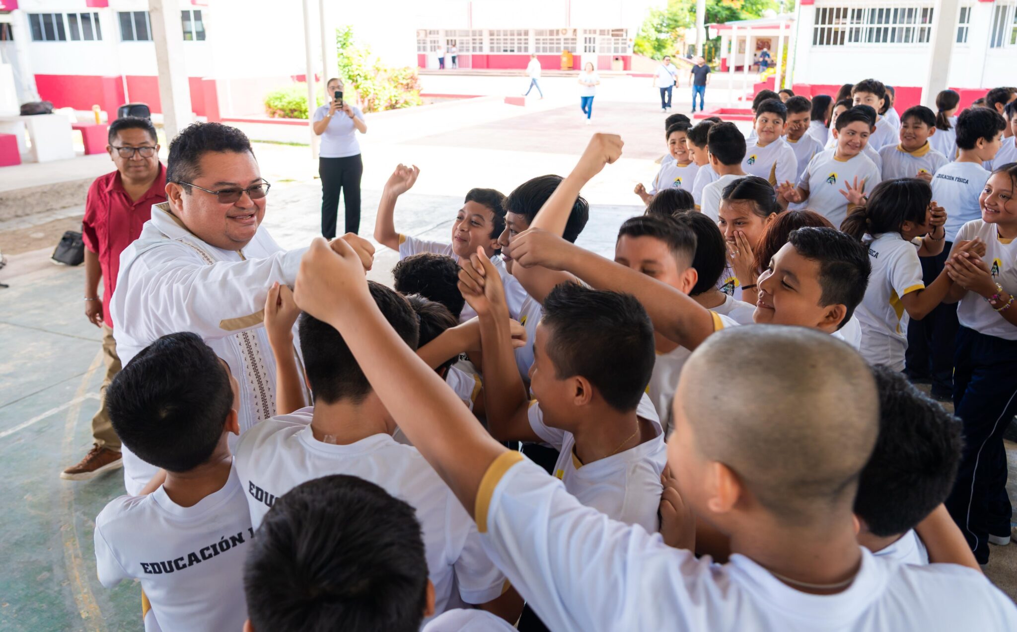 Durante su recorrido por las instalaciones, el edil Chacón Méndez saludó a las y los alumnos, quienes se acercaron para tomarse la foto del recuerdo y refrendarle su admiración por las acciones realizadas en beneficio de la educación en Cozumel.