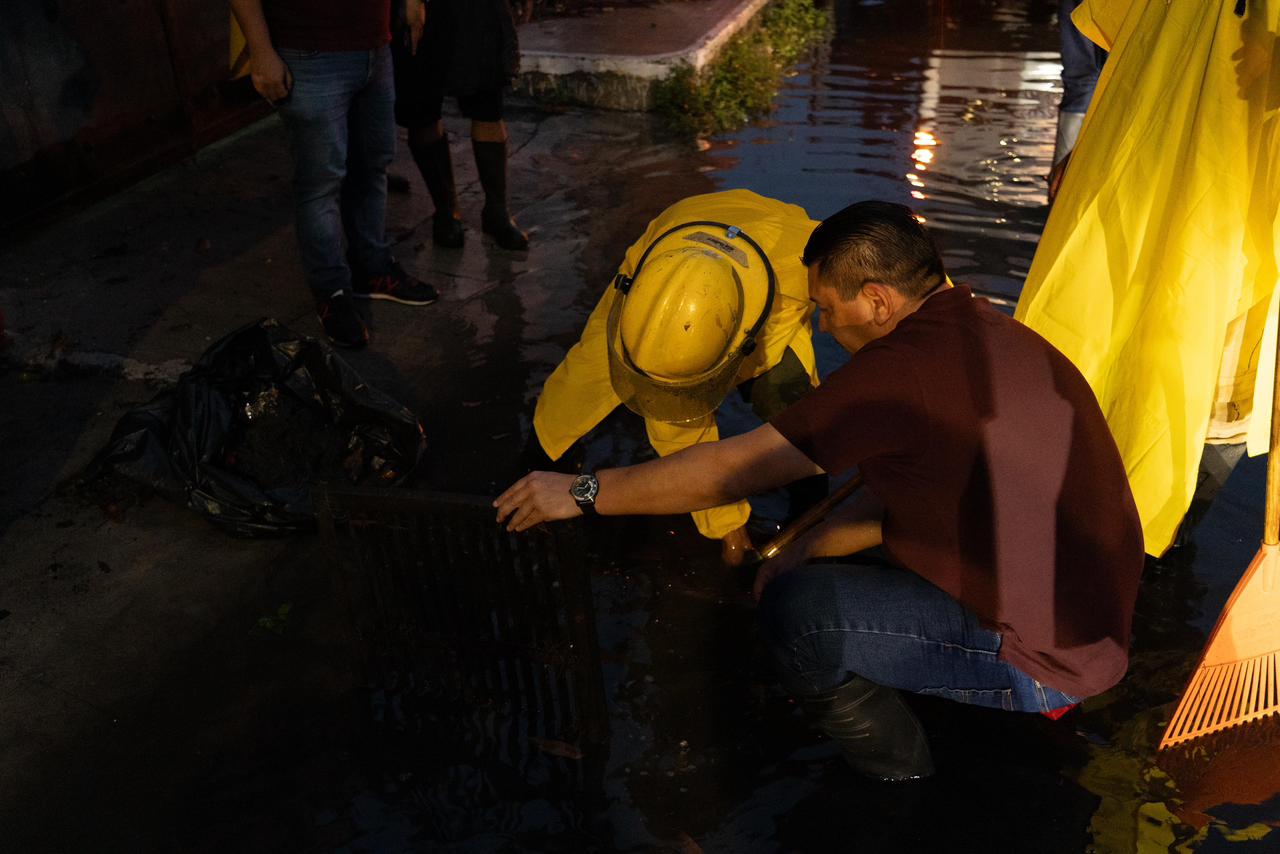 Como medida preventiva ante las lluvias registradas en las últimas horas, el presidente municipal, José Luis Chacón, acudió a las zonas propensas a inundaciones donde supervisó el trabajo de limpieza de rejillas de los pozos de absorción, con el objetivo de facilitar el flujo del agua y permitir el tránsito seguro de la comunidad.