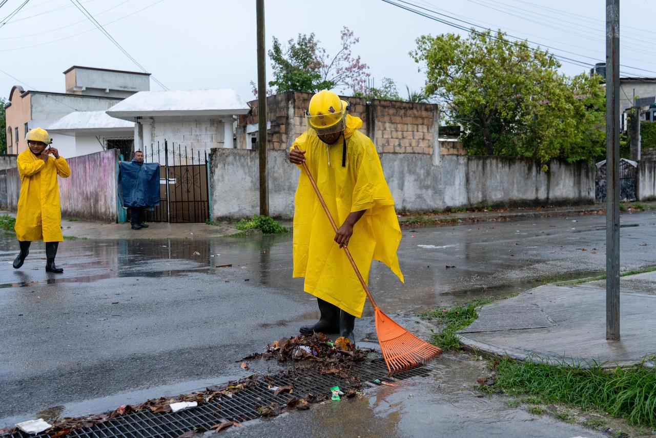 En los puntos supervisados, el personal retiró hojas y materiales sólidos que fueron arrastrados por el agua de lluvia hacia las rejillas, mismos que obstruían el correcto funcionamiento de los pozos de absorción.