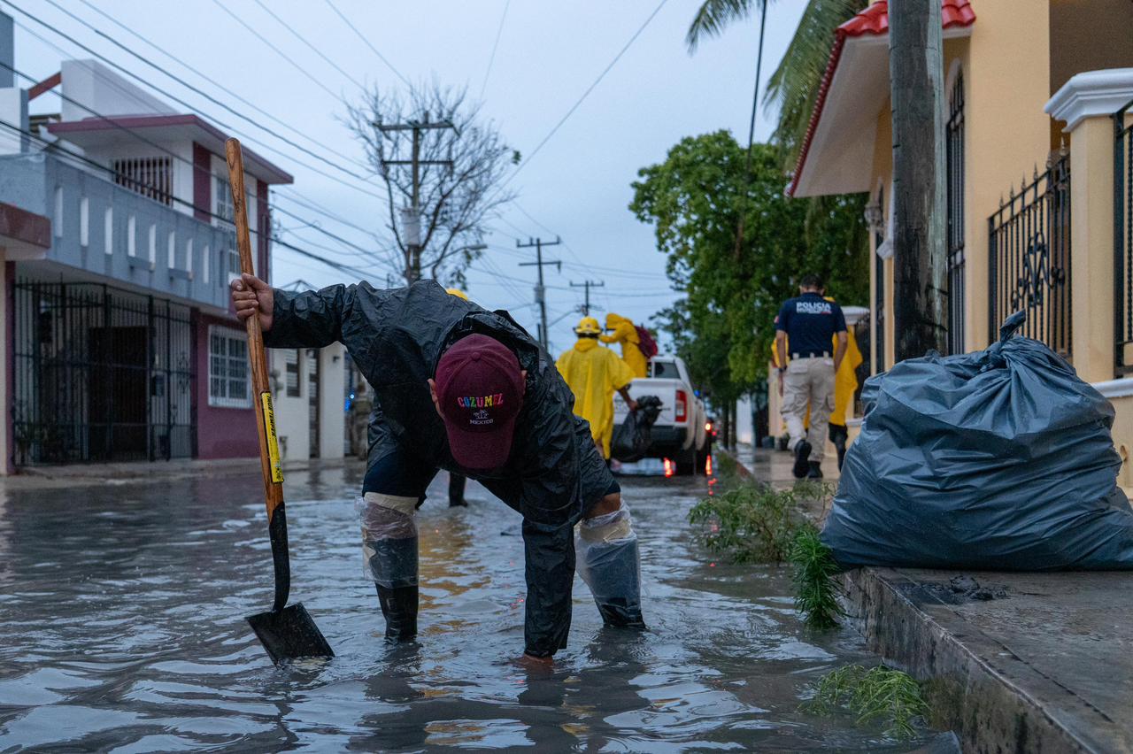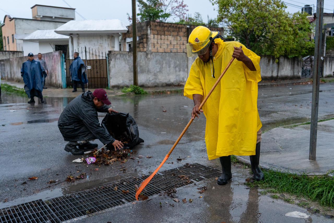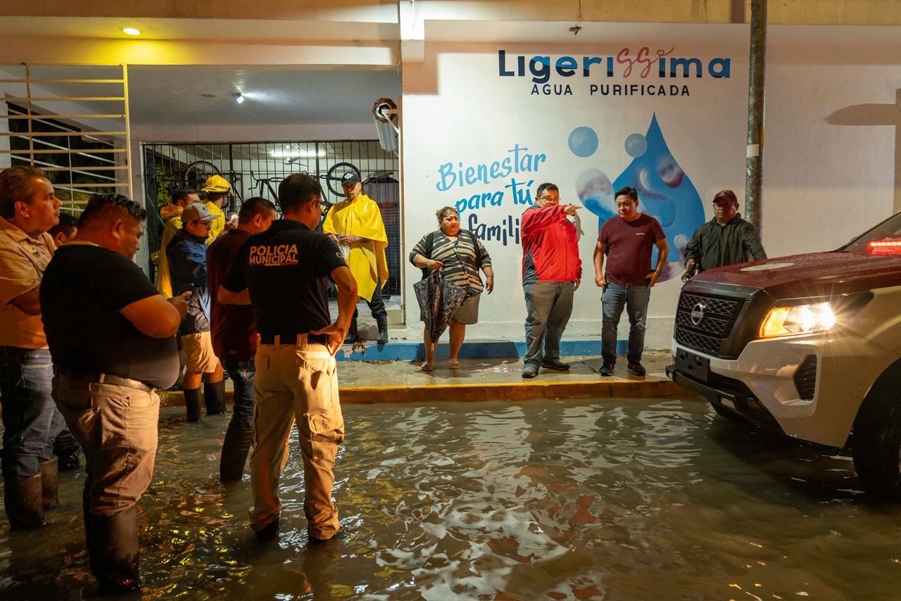 En compañía del director de Protección Civil, Alfredo Arellano Villaseñor, el director de Servicios Públicos, Héctor Martínez Ramírez y del director de Obras Públicas, Andrés Catzin Gómez, el presidente recorrió diversas colonias de la isla para verificar personalmente las labores de limpieza que realizan las brigadas como parte del operativo de apoyo por tormenta.