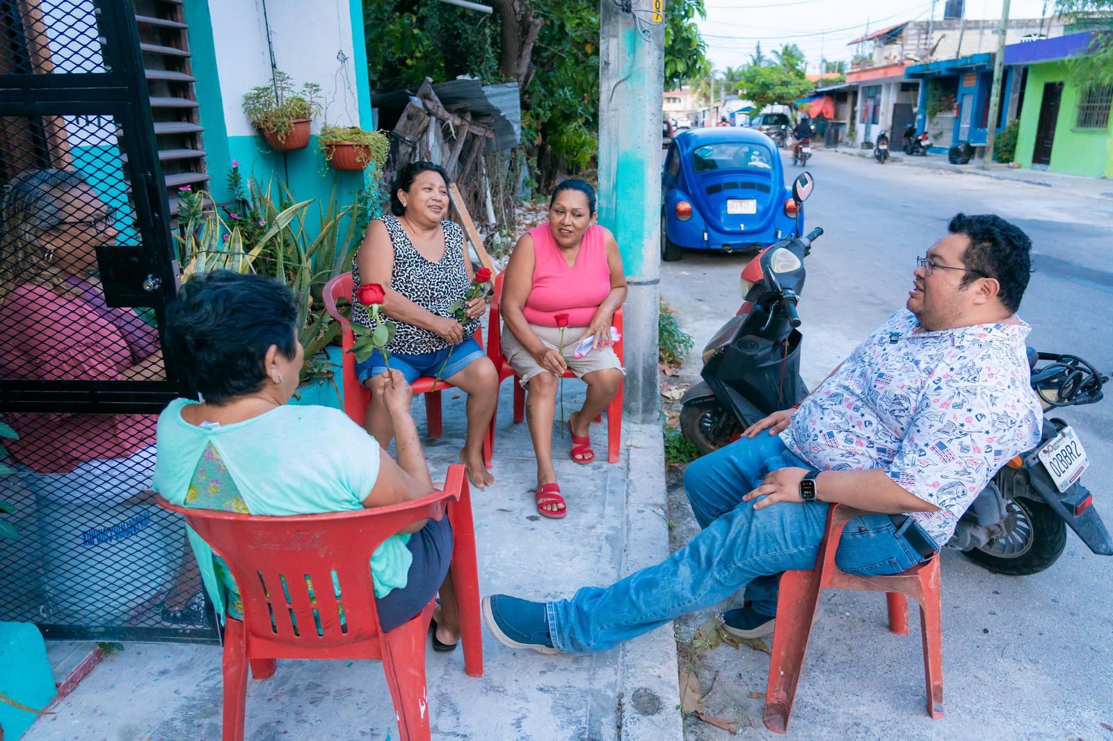 Durante el recorrido, el presidente y su esposa, Diana Blanco Sosa, presidenta honoraria del Sistema DIF, entregaron una rosa a las mamás para celébralas con motivo del 10 de mayo y platicaron con la familias para escuchar atentamente sus solicitudes. “Continuamos trabajando sin parar por y para ustedes”, aseguró el presidente municipal.
