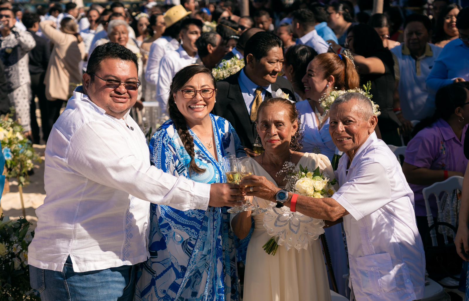 Entre abrazos y aplausos, las nuevas parejas sellaron un momento inolvidable, demostrando que en Cozumel el amor no solo se celebra, sino que se honra y se fortalece en comunidad.