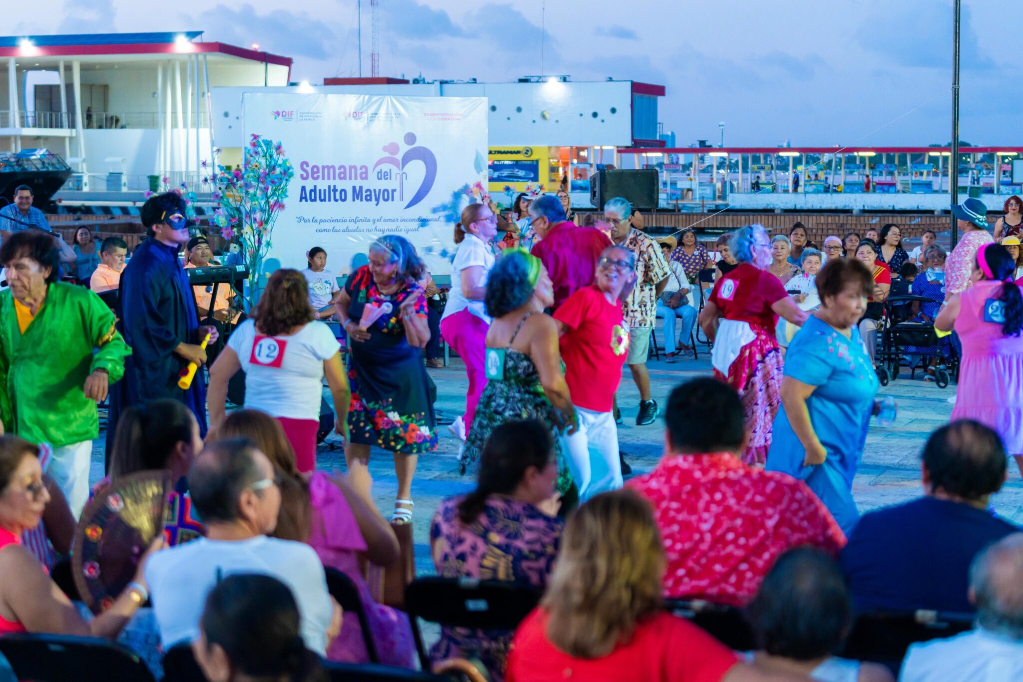 El Presidente Municipal de Cozumel, José Luis Chacón Méndez, junto con su esposa la presidenta honoraria del Sistema DIF Cozumel, Diana Sosa Blanco, encabezaron la clausura de la Semana del Adulto Mayor con la tradicional «Tardeada del Recuerdo”, realizada en la Explanada de la Bandera, como parte de las actividades por el Día Nacional del Adulto Mayor.