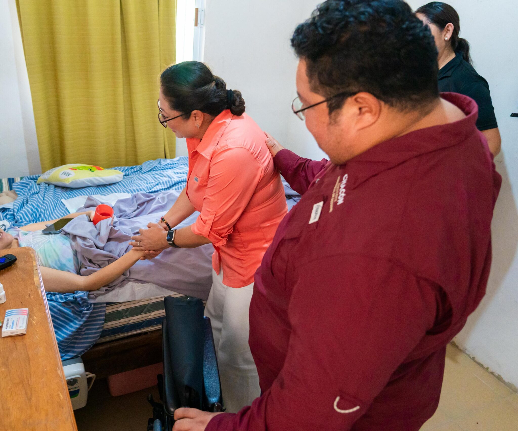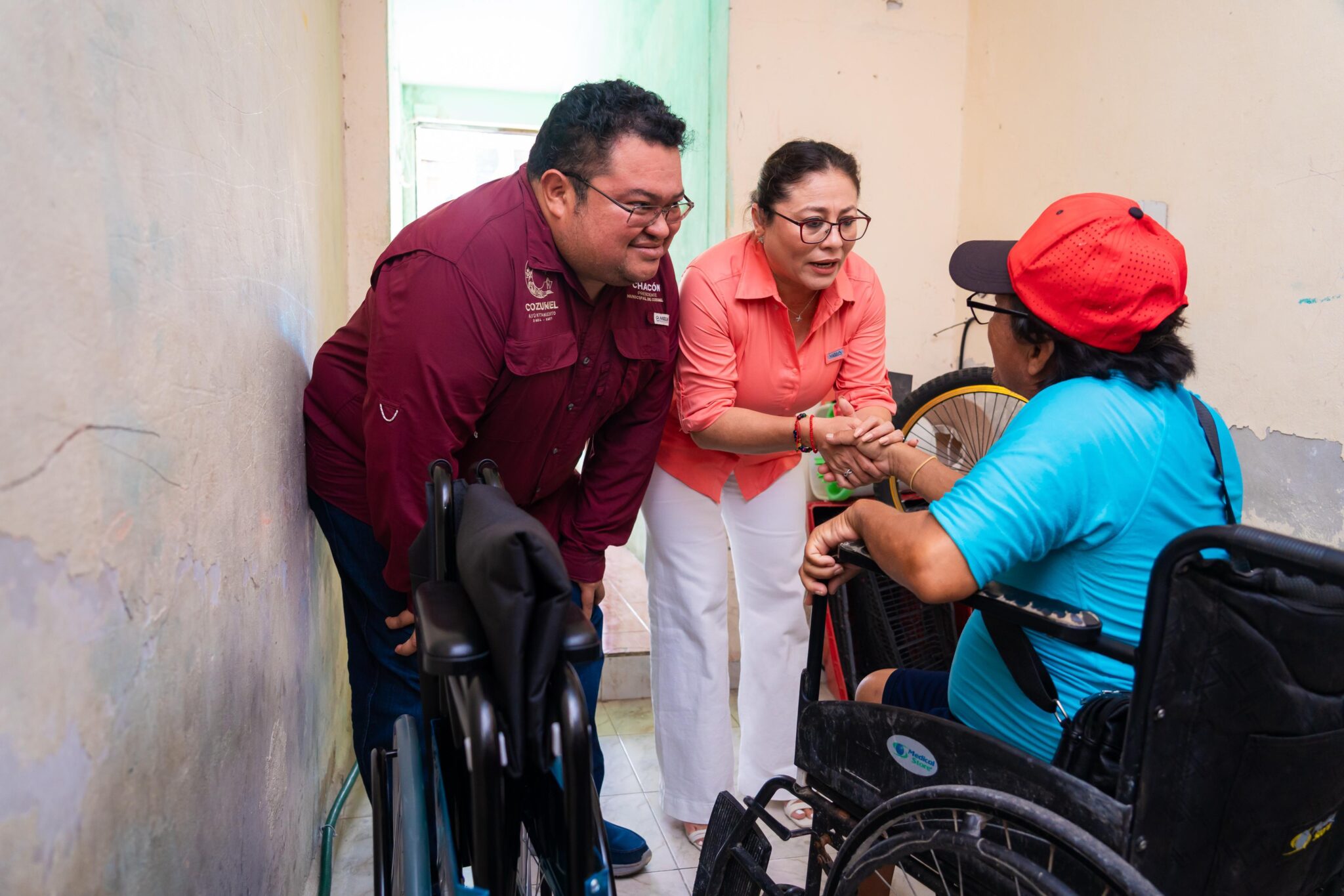 Belkyz Karyne Quezada de la Rivera del Fraccionamiento Caribe, Marta Julia Baldera Chávez de la colonia Emiliano Zapata y José Mario Petul Traconis San Miguel II, fueron beneficiados con una silla de ruedas para mejorar su calidad de vida y contribuir a su bienestar.