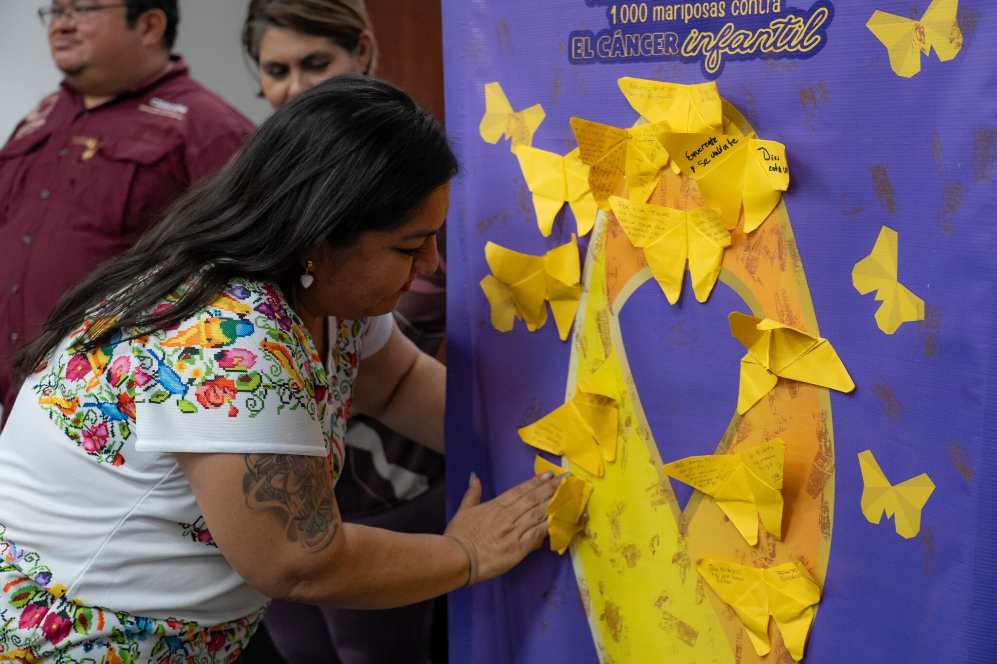 “Hoy nos sumamos a esta noble causa para acompañar a las familias que viven esta difícil situación. En Cozumel también hay niñas y niños que luchan contra el cáncer, y con esta firma queremos decirles que no están solos. Cada mariposa que coloquemos en este lazo dorado lleva un mensaje de esperanza, acompañado de una aportación voluntaria que servirá para financiar tratamientos y medicamentos”, señaló.