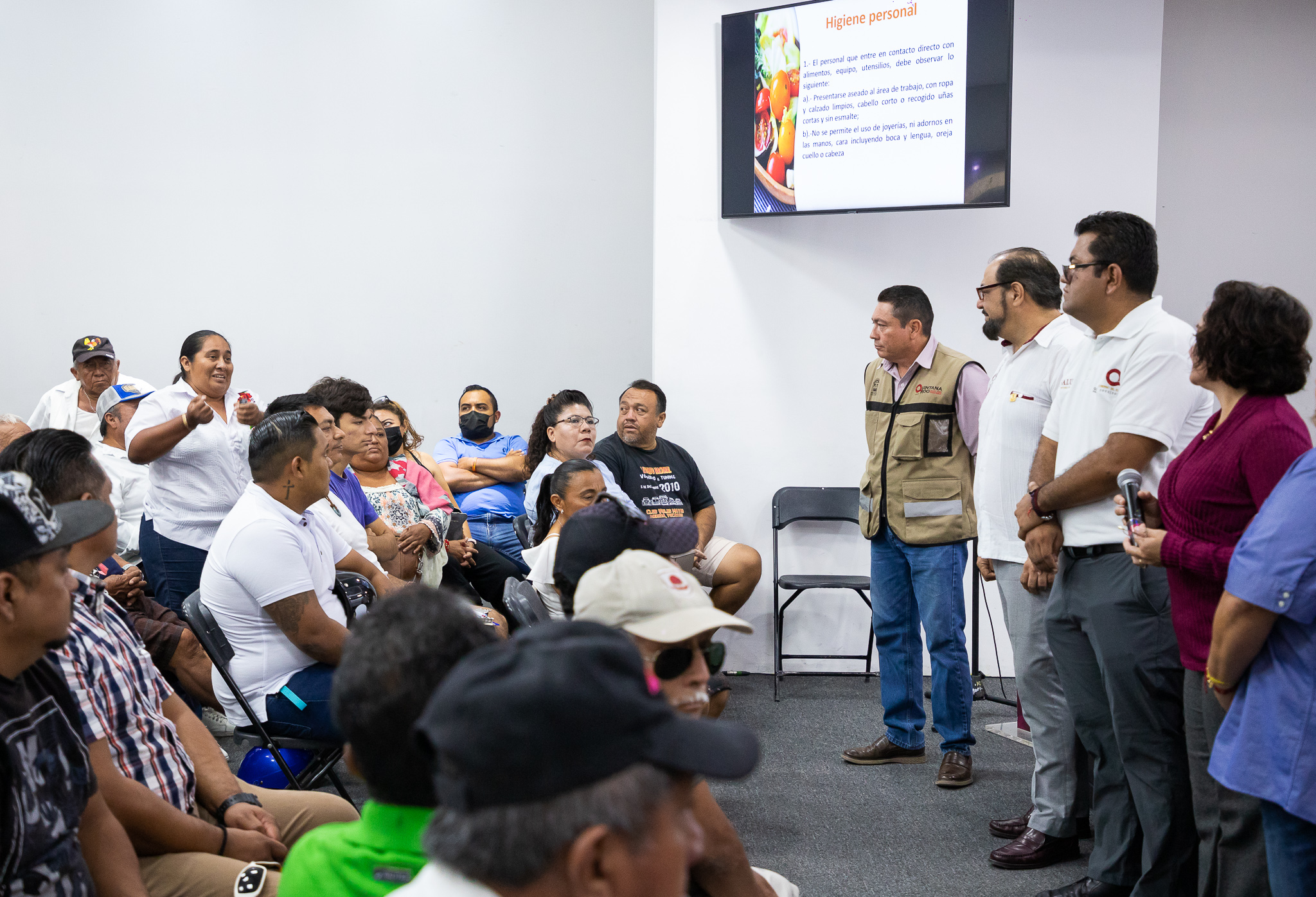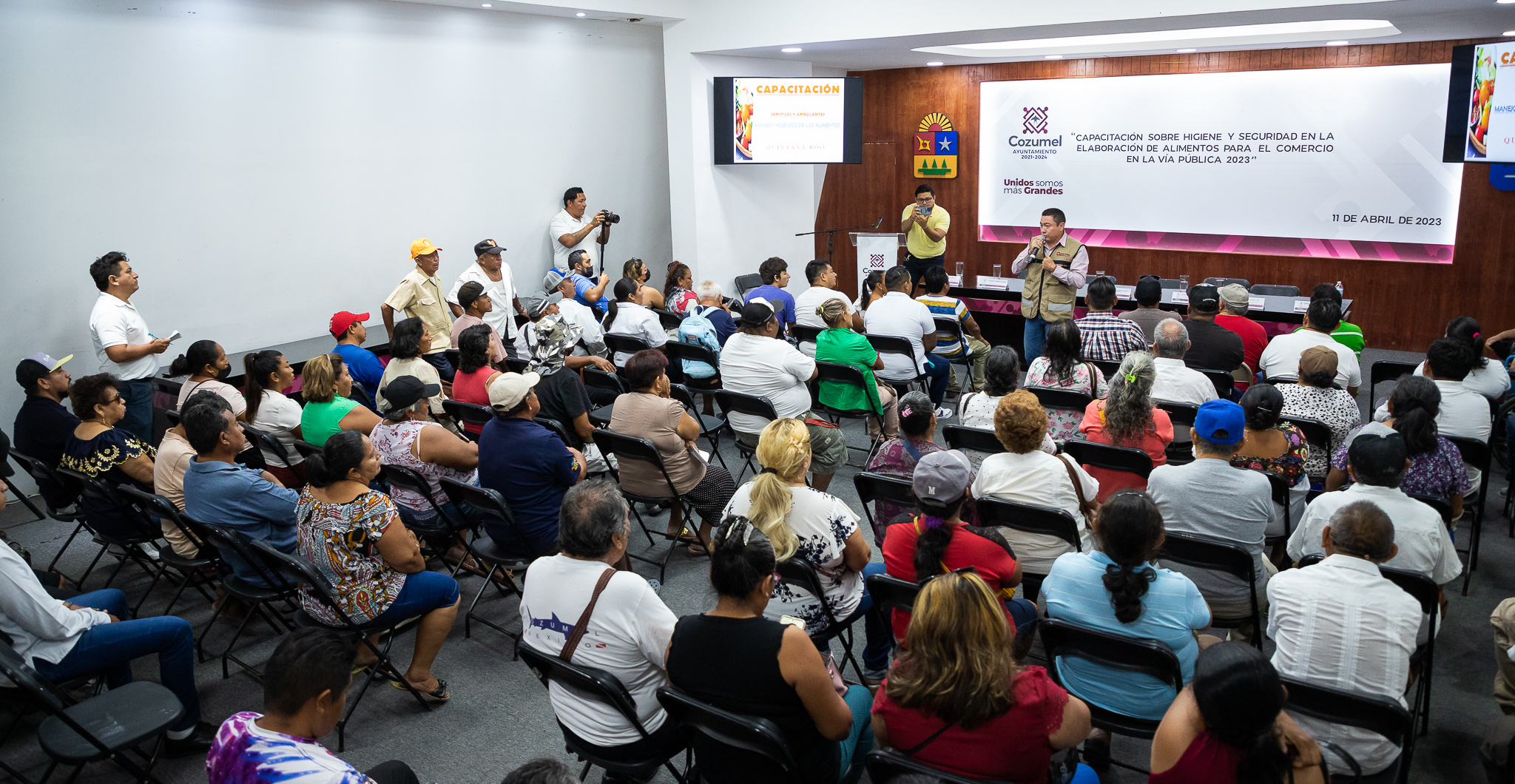 Más de 100 comerciantes fueron capacitados mediante el curso “Higiene y seguridad en la elaboración de alimentos para el comercio en la vía pública”, impartido por el gobierno municipal que encabeza Juanita Alonso Marrufo a través de la dirección de Turismo y desarrollo económico en coordinación con la Comisión para la protección contra los riesgos sanitarios (Cofepris).