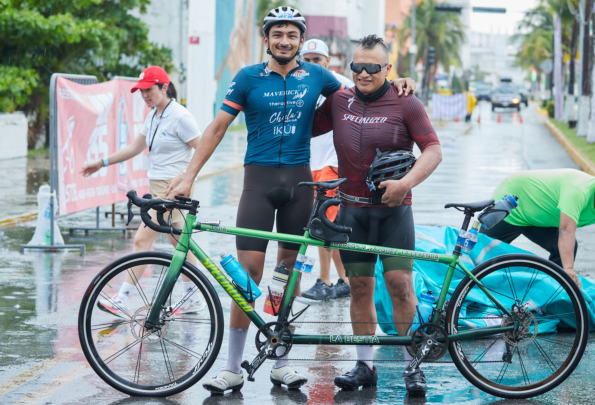 Con el cozumeleño Alan Carrillo como guía, el triatleta invidente Marcos “La Leyenda” Velázquez tomó por asalto el liderato del Ultra 355 Cozumel, con sensacional actuación en la lluviosa segunda jornada, en la que impusieron su ley en la etapa de 200 kilómetros de ciclismo con los que se complementaron los 300 km de esta disciplina que incluye este gran desafío deportivo.