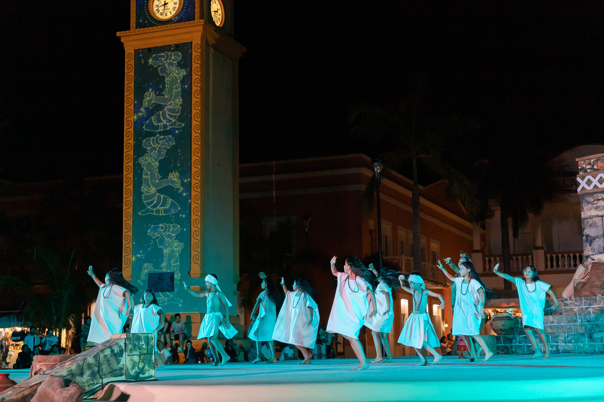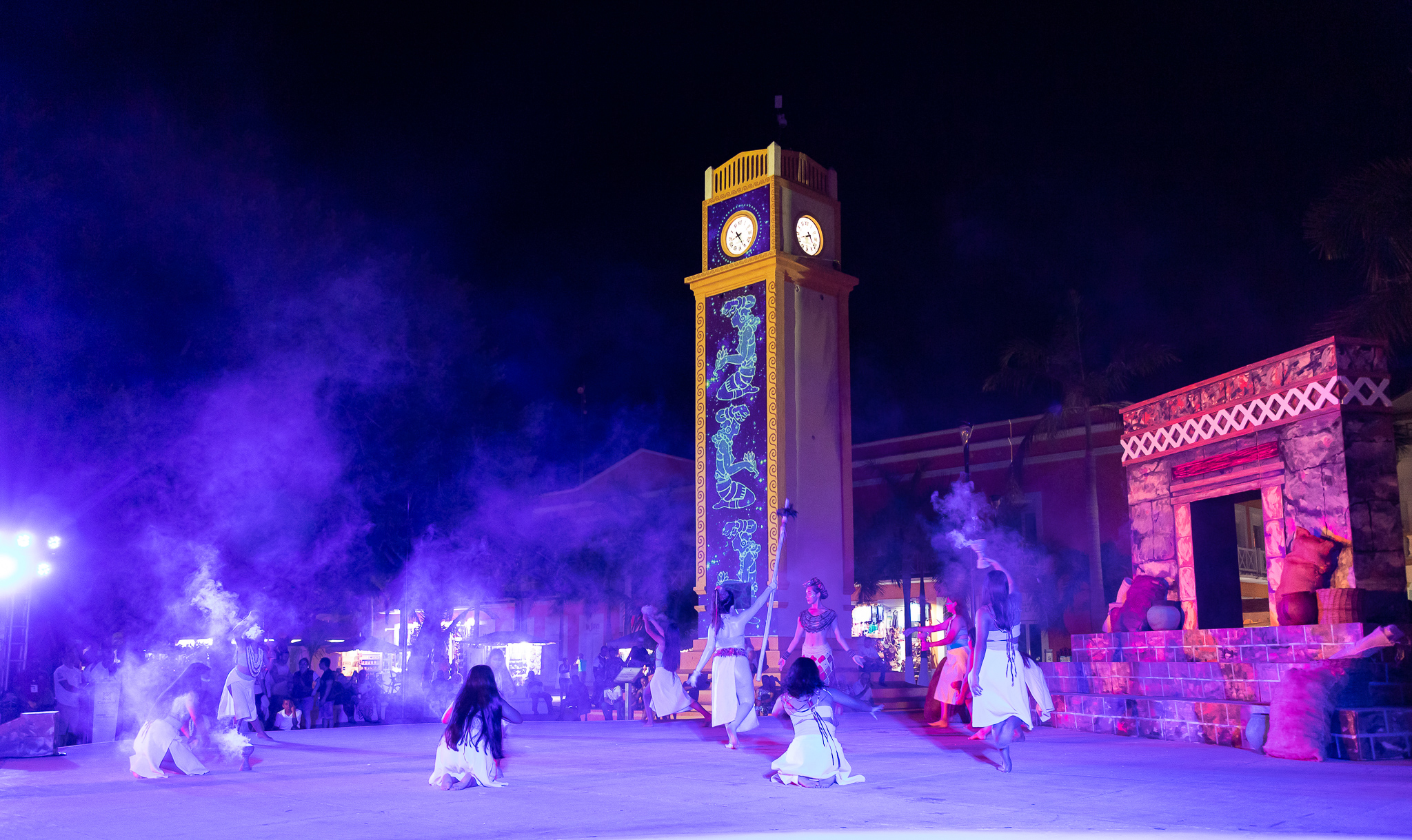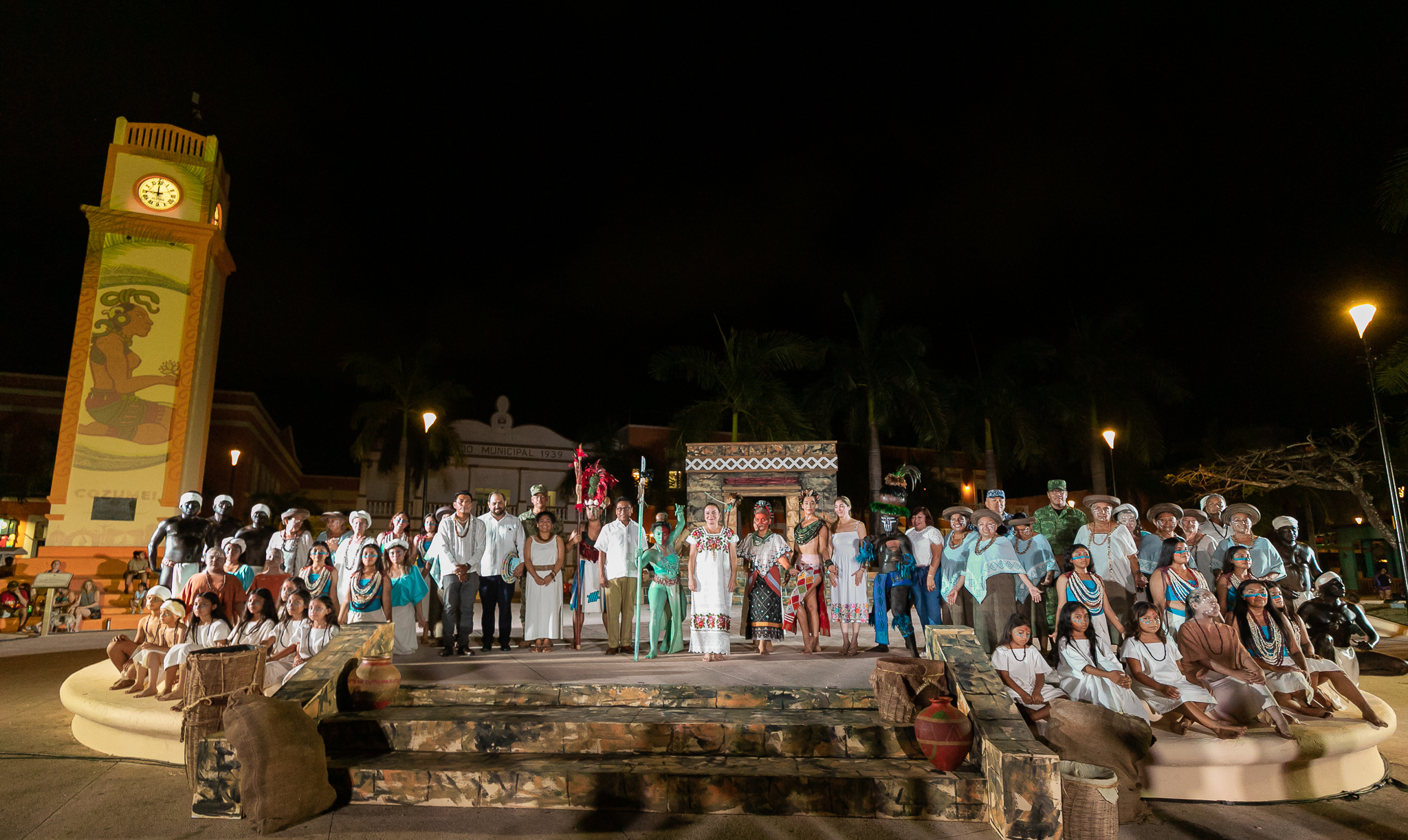 Como parte del Festival Oráculo Ixchel en el marco de la tradicional Travesía Sagrada Maya, se llevó a cabo a través de danzas prehispánicas la representación de la consulta el lugar sagrado en espera del mensaje de la deidad maya teniendo como marco el emblemático reloj público en el que se proyectaron imágenes de esta civilización y que fue disfrutada por cientos de turistas y público local que se dio cita en el parque Benito Juárez.