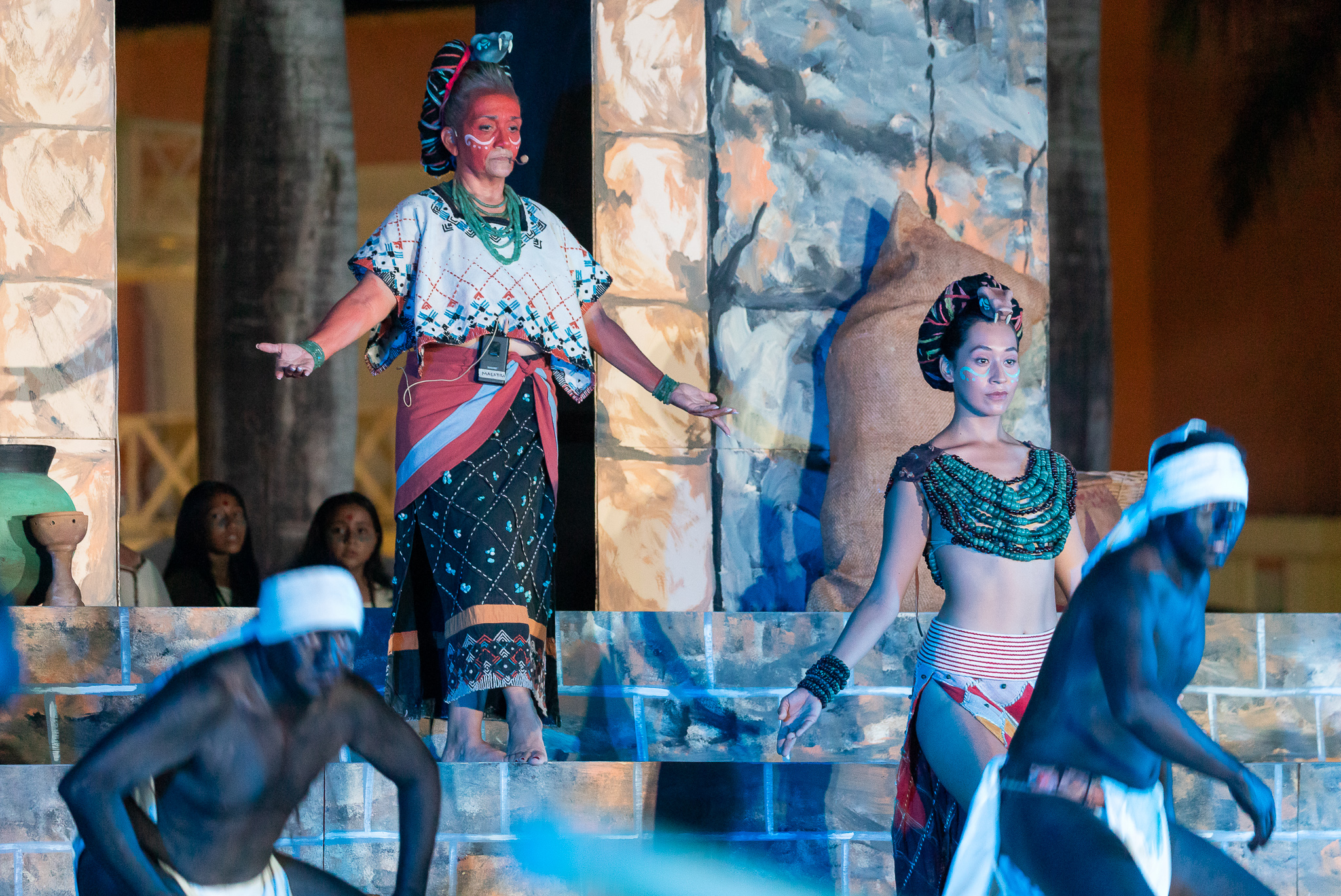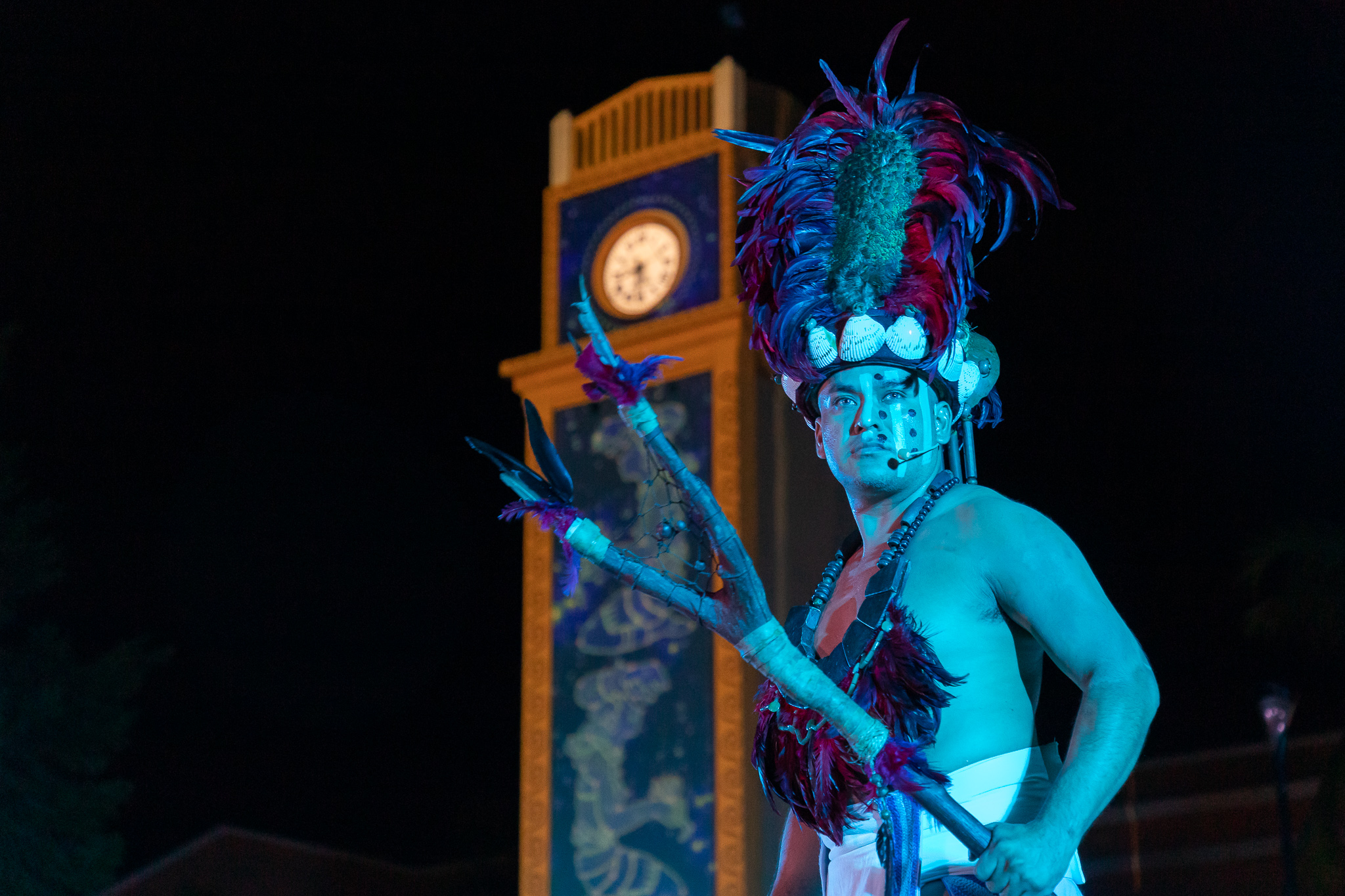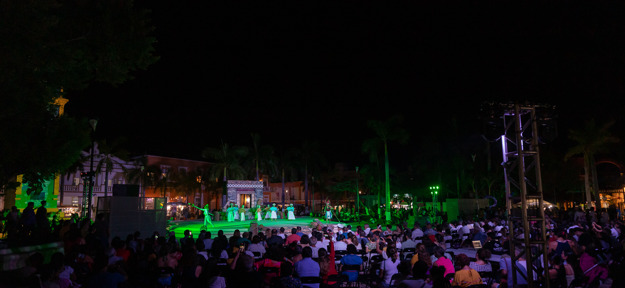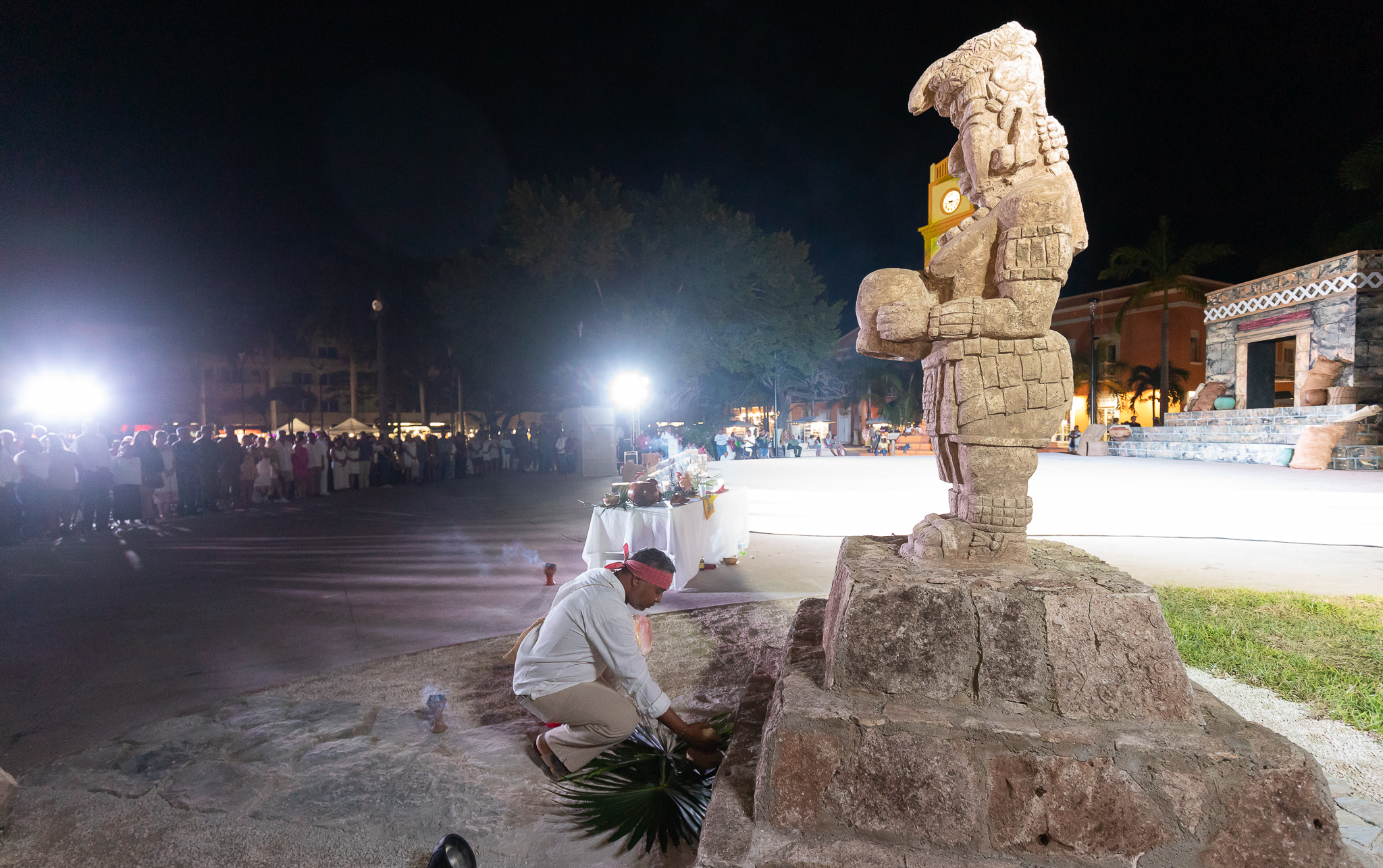 Como parte del Festival Oráculo Ixchel en el marco de la tradicional Travesía Sagrada Maya, se llevó a cabo a través de danzas prehispánicas la representación de la consulta el lugar sagrado en espera del mensaje de la deidad maya teniendo como marco el emblemático reloj público en el que se proyectaron imágenes de esta civilización y que fue disfrutada por cientos de turistas y público local que se dio cita en el parque Benito Juárez.