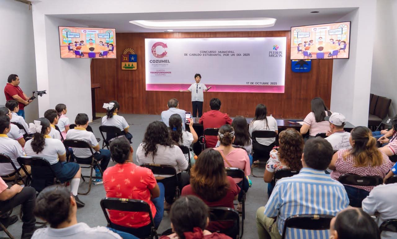 Con el objetivo de fomentar la formación cívica, democrática y participativa en la niñez cozumeleña, el Ayuntamiento de Cozumel, encabezado por el presidente municipal José Luis Chacón Méndez, realizó con éxito el “Concurso Municipal de Cabildo Estudiantil por un Día 2025” en el salón Municipios de Quinta Roo del Palacio Municipal.