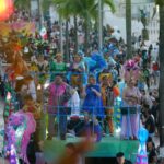 Más tarde se sumó al contingente el artista mexicano Chico Che Chico, luciendo su característico overol blanco, quien acompañó al presidente municipal durante el paseo en el marco del 152 aniversario de la máxima fiesta de tradición y orgullo isleño. El ballet oficial mostró sus mejores pasos, mientras que las comparsas, algunas caminando y otras a bordo de sus coloridos carros alegóricos con temáticas como Toy Story y Noche Disco, llenaron de ritmo y color la avenida.