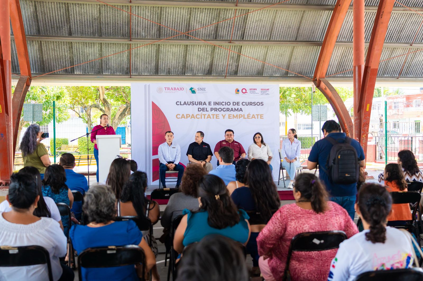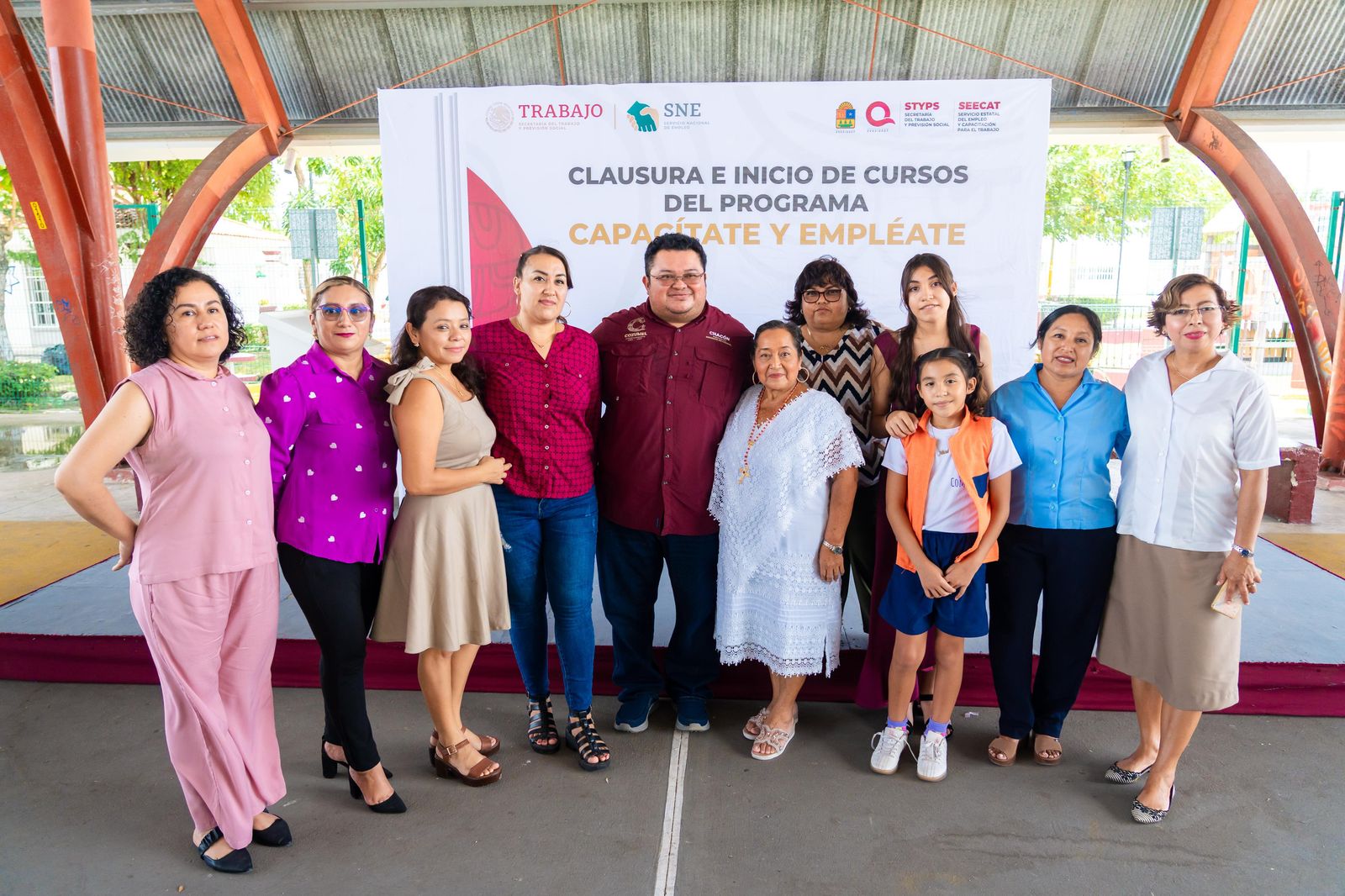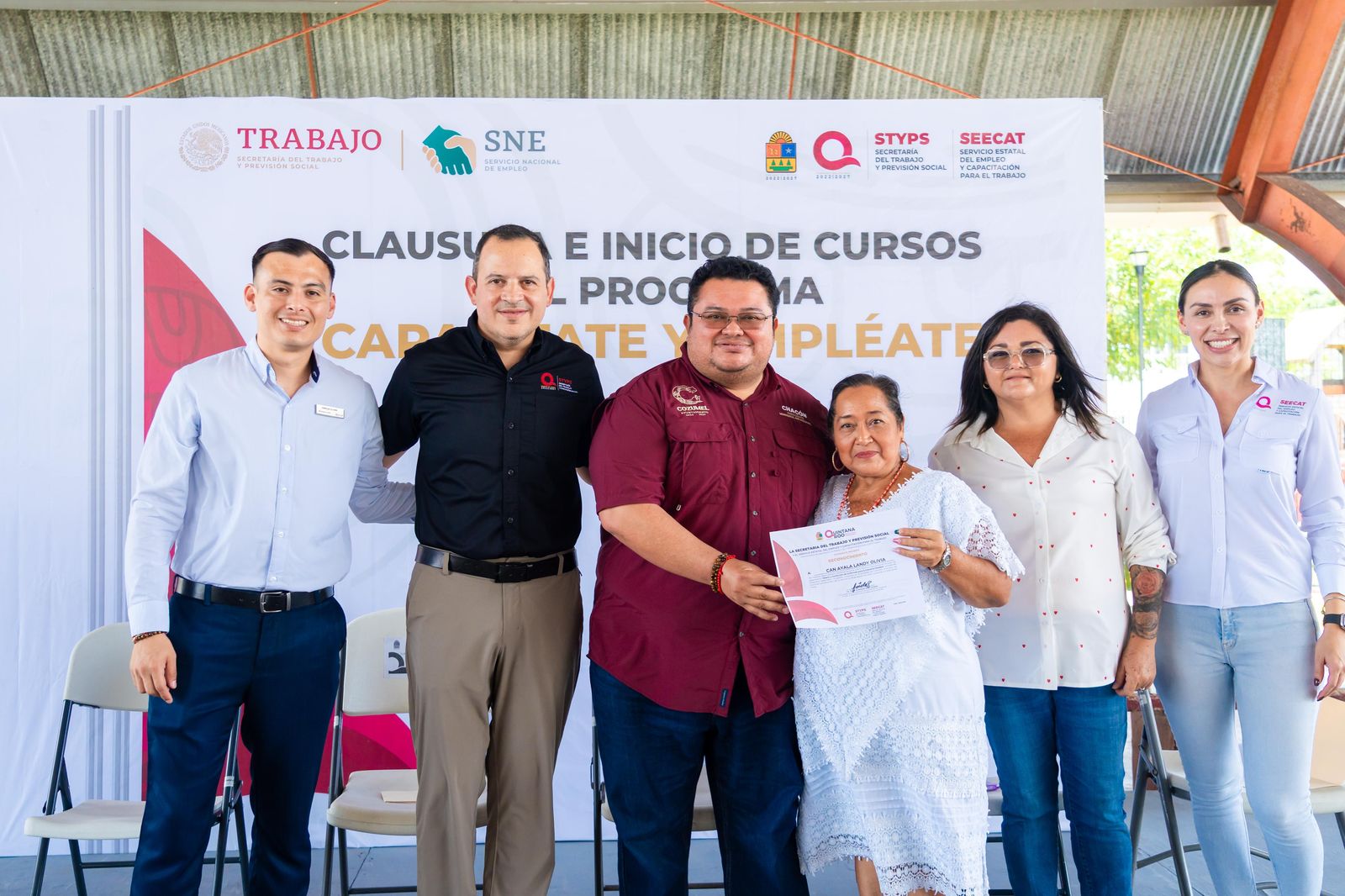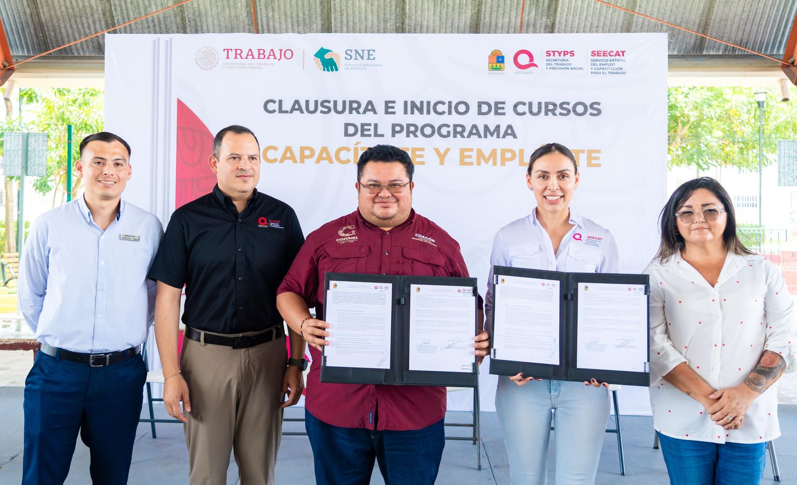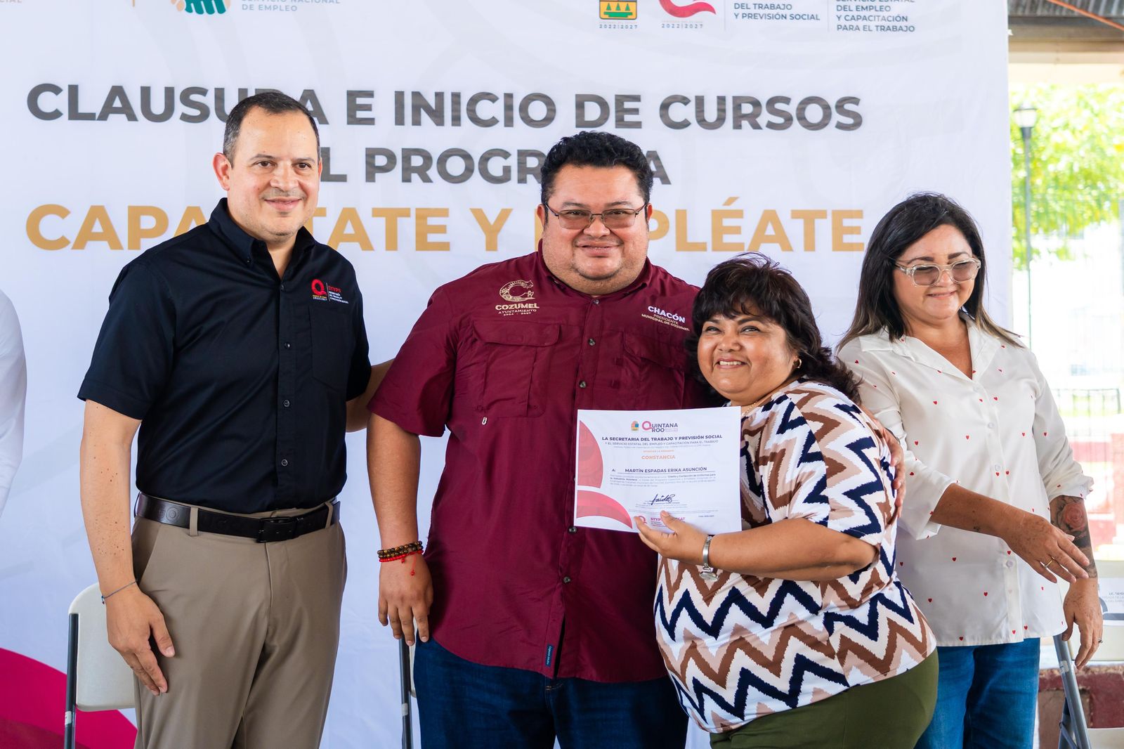 En el domo del parque “Las Rampas” de la colonia San Gervasio, se realizó con gran éxito la clausura e inicio de cursos del programa “Capacítate y Empléate” Cozumel, con la presencia de autoridades municipales y estatales y beneficiarios. Esta iniciativa busca fortalecer el desarrollo de habilidades, fomentar el autoempleo y generar oportunidades laborales para la población. Durante el acto, también se llevó a cabo la firma del convenio de capacitación de dicho programa.