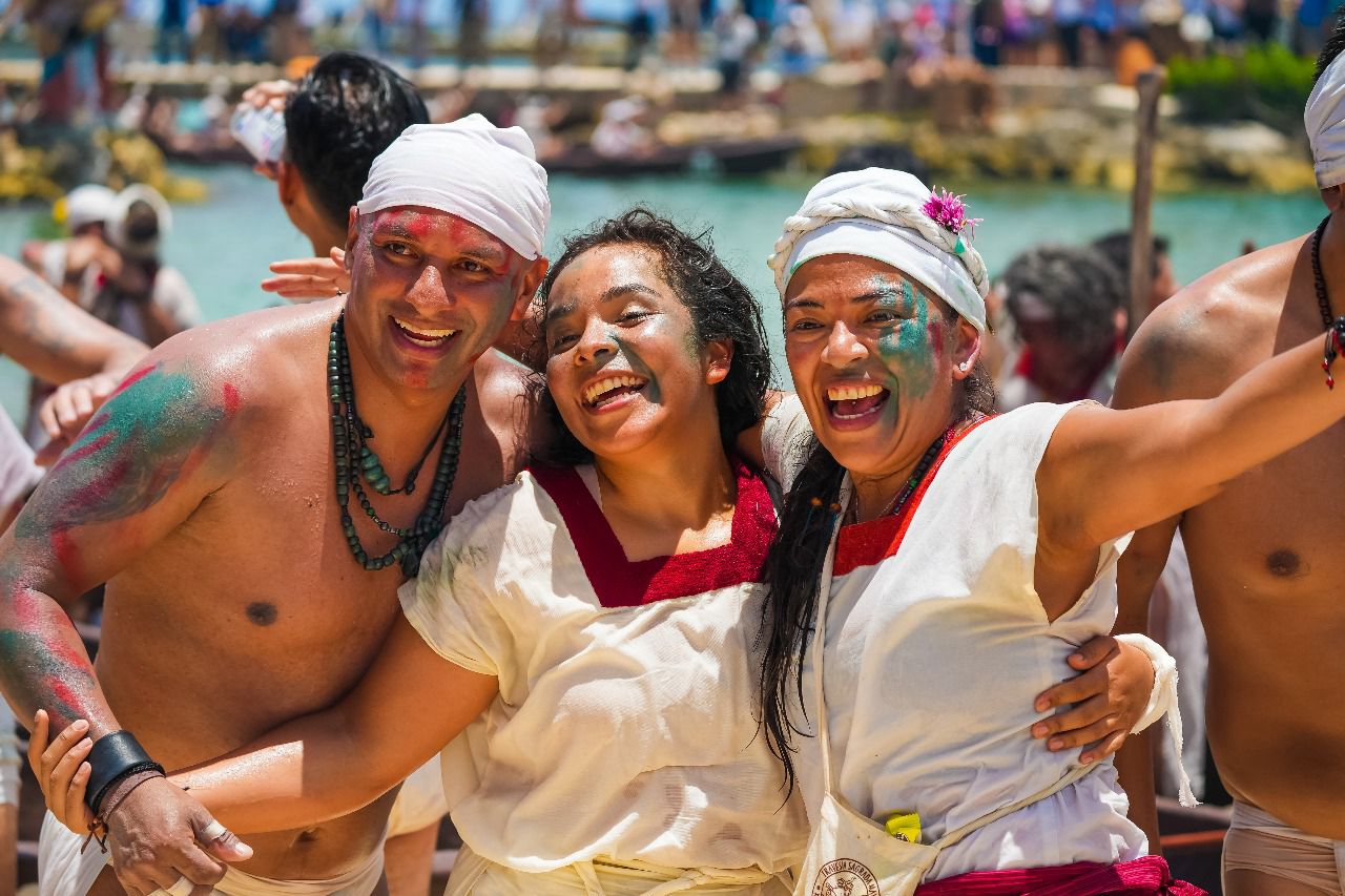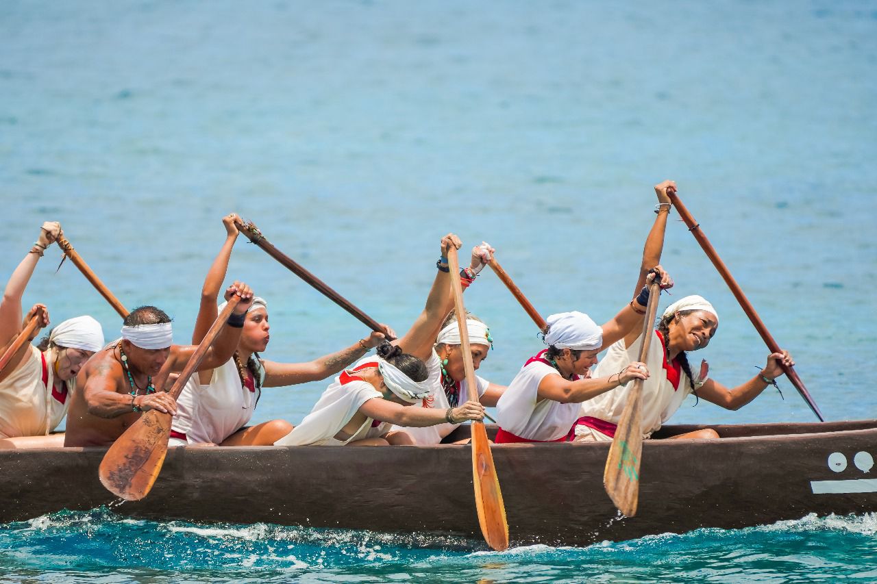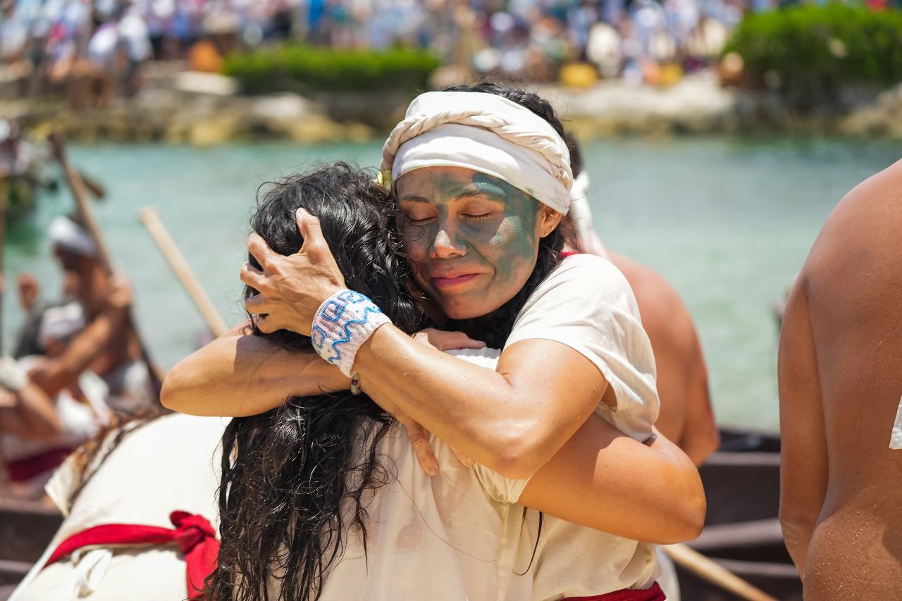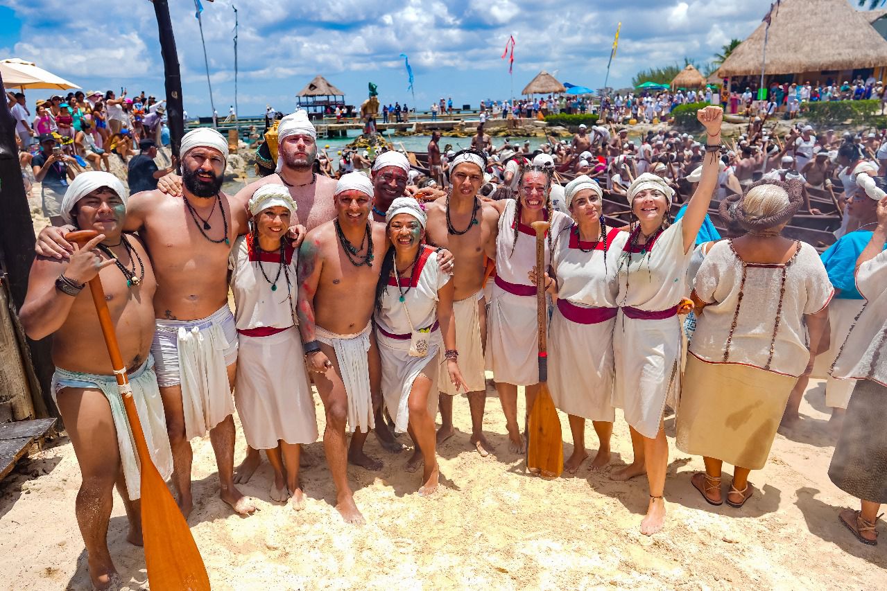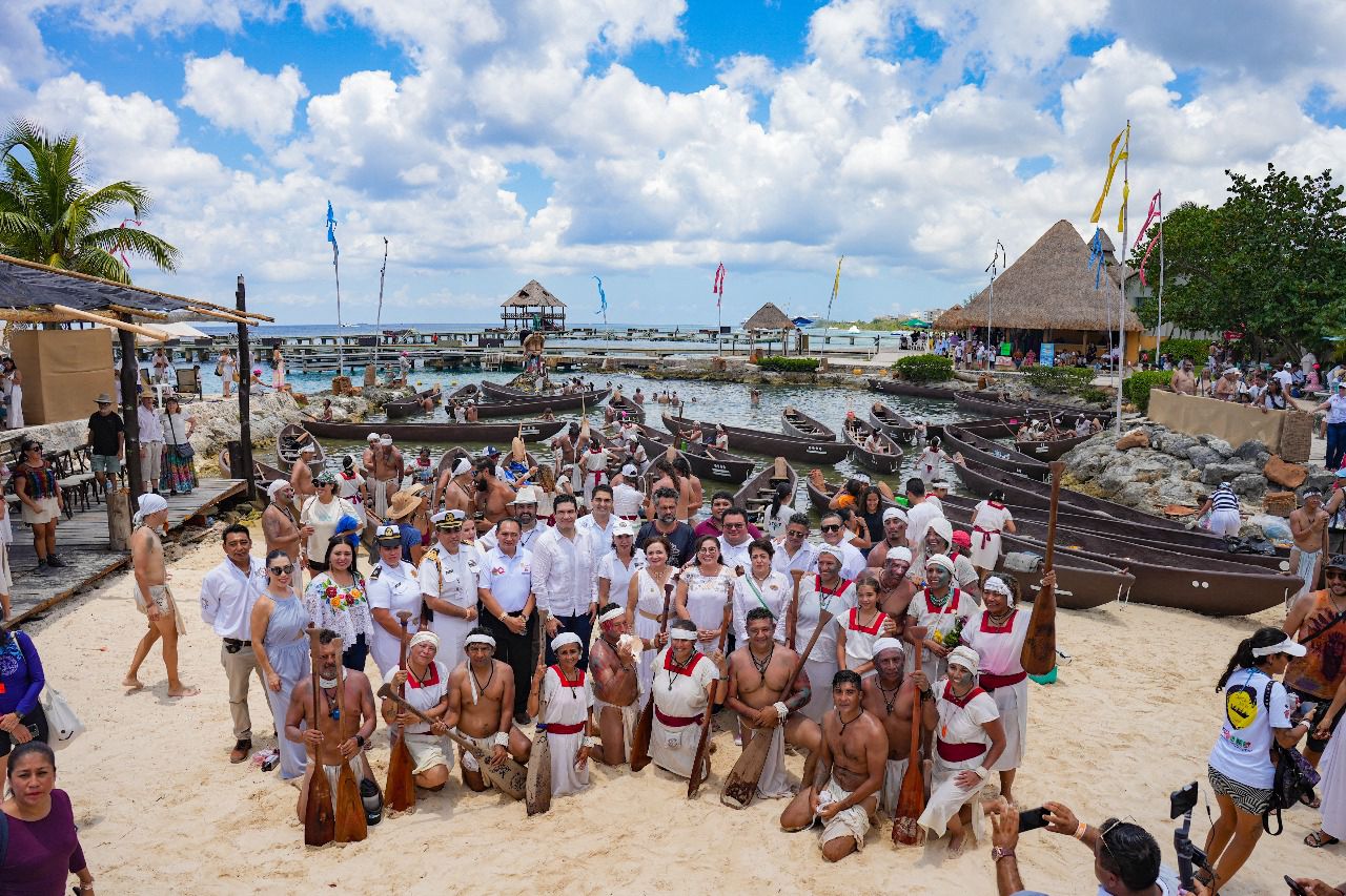 Un total de 31 canoas completaron la travesía desde el antiguo puerto prehispánico de Polé, actualmente conocido como Xcaret, hasta la caletita de Chankanaab, tras remar durante poco más de seis horas.