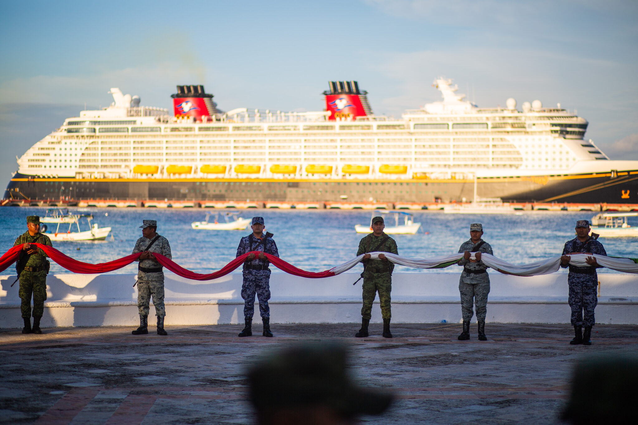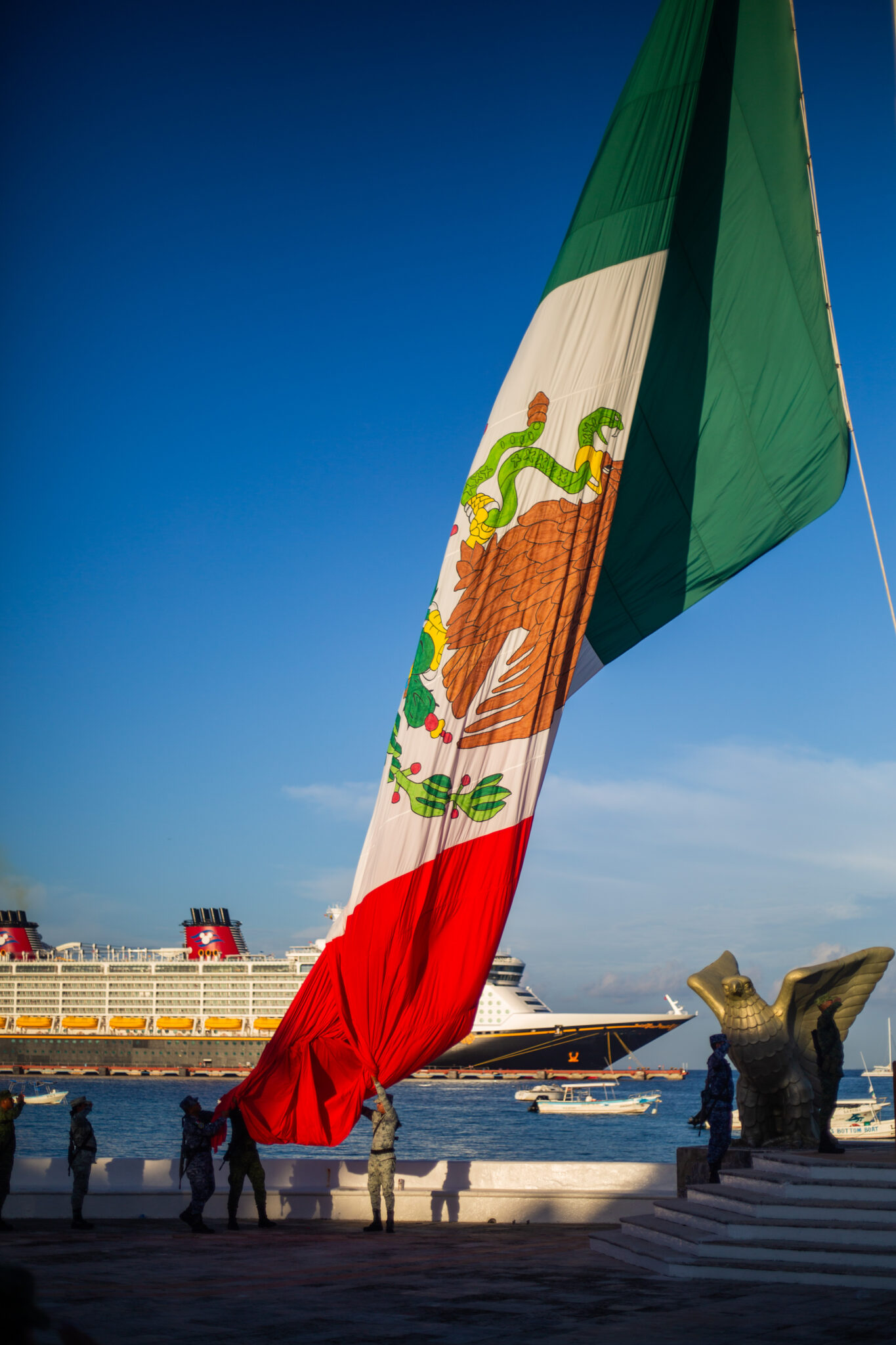 Con los colores verde, blanco y rojo ondeando en lo alto de la asta bandera, se entonaron los acordes del Himno a Quintana Roo y posteriormente del Himno Nacional Mexicano.