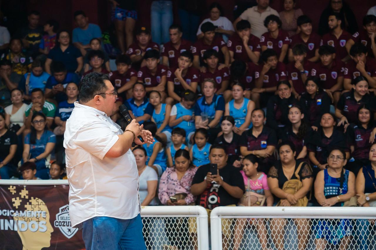 Acompañado de su esposa, Diana Sosa Blanco, presidenta honoraria del Sistema DIF Cozumel, el presidente municipal agradeció el compromiso y la dedicación de los entrenadores, así como el respaldo permanente de los padres y madres de familia, a quienes reconoció como pieza fundamental en el desarrollo integral de las y los deportistas, al fungir como los primeros formadores emocionales.