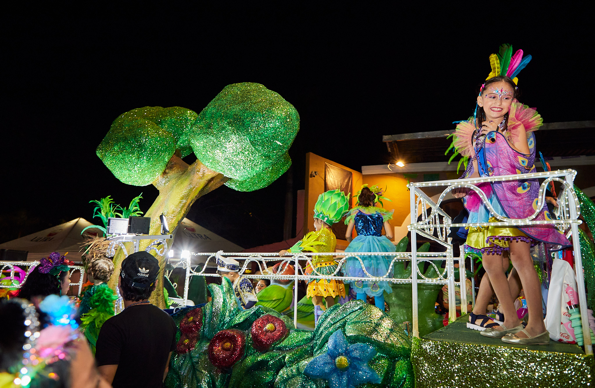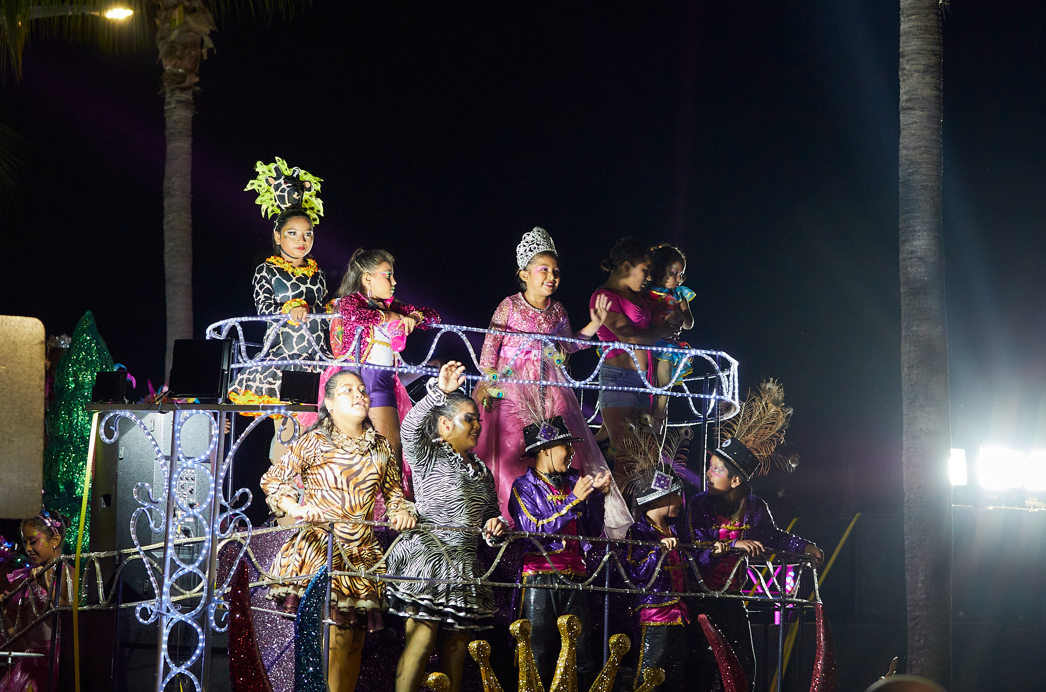 En el derrotero los espectadores también pudieron observar carros decorados con arlequines, selvas, florales, cisnes blancos, apaches, piratas, egipcios, toreros, cavernosaurios, entre otras formas que participan en el tradicional concurso de carros alegóricos, donde también se pudo observar a los ganadores y participantes del concurso de disfraces de niños y niñas de las diversas categorías, como Colibrí caribeño y Tinkerbell, por mencionar algunos.