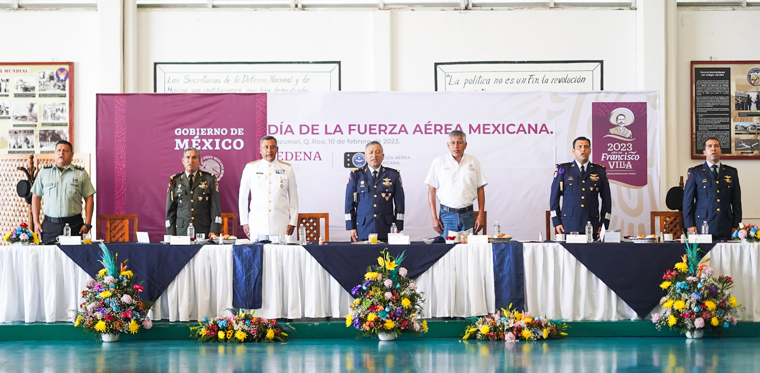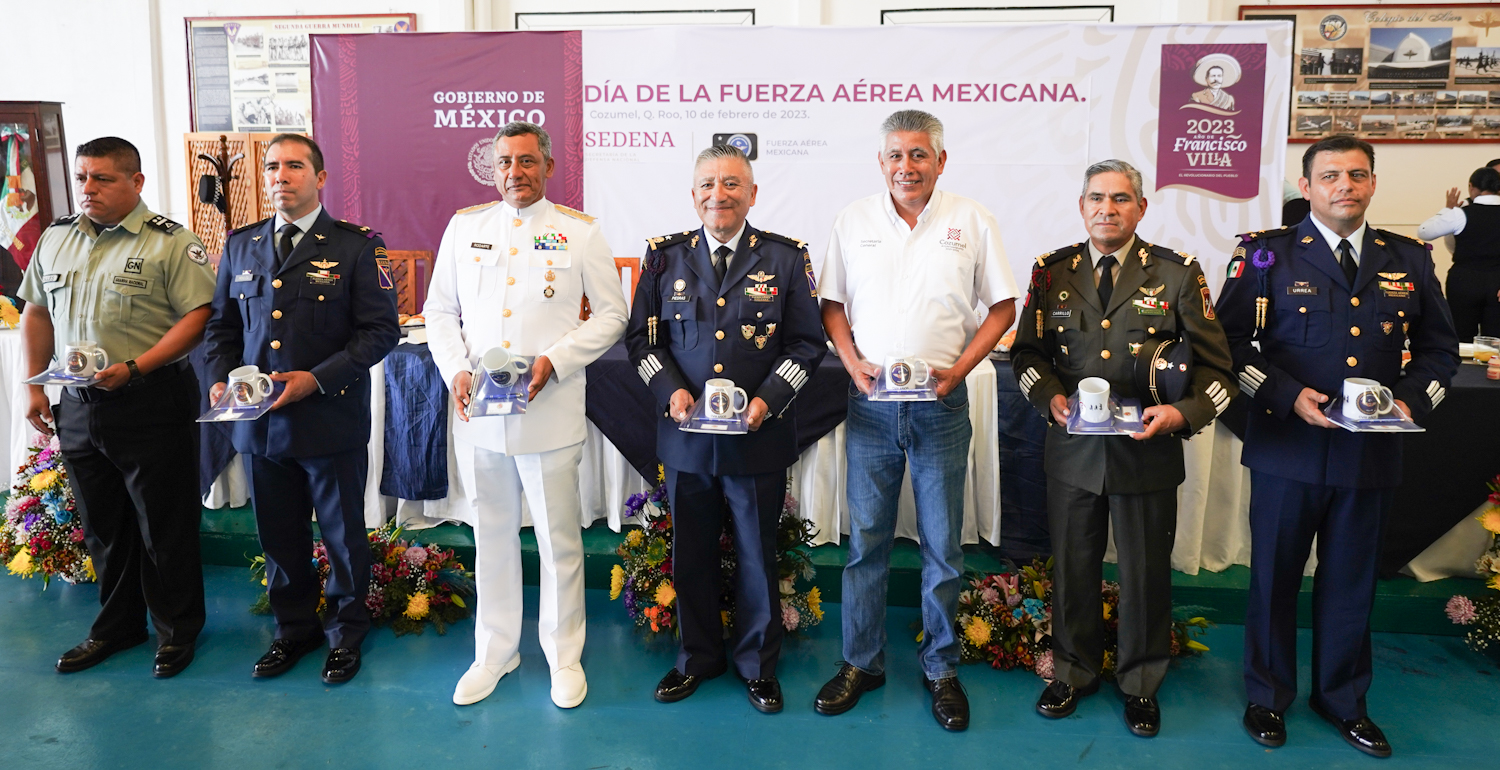 En representación de la munícipe, el secretario general Ociel González González, acompañó al General de grupo, Piloto Aviador, Diplomado de Estado Mayor Aéreo, Roberto González Piedras, nuevo comandante de la Base Aérea Militar (B.A.M No. 4) de Cozumel, quien a su vez agradeció al gobierno municipal, así como al sector empresarial, cultural y demás de la isla, por sumarse a esta celebración.