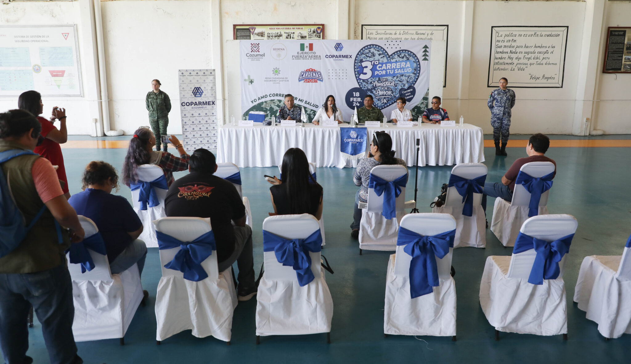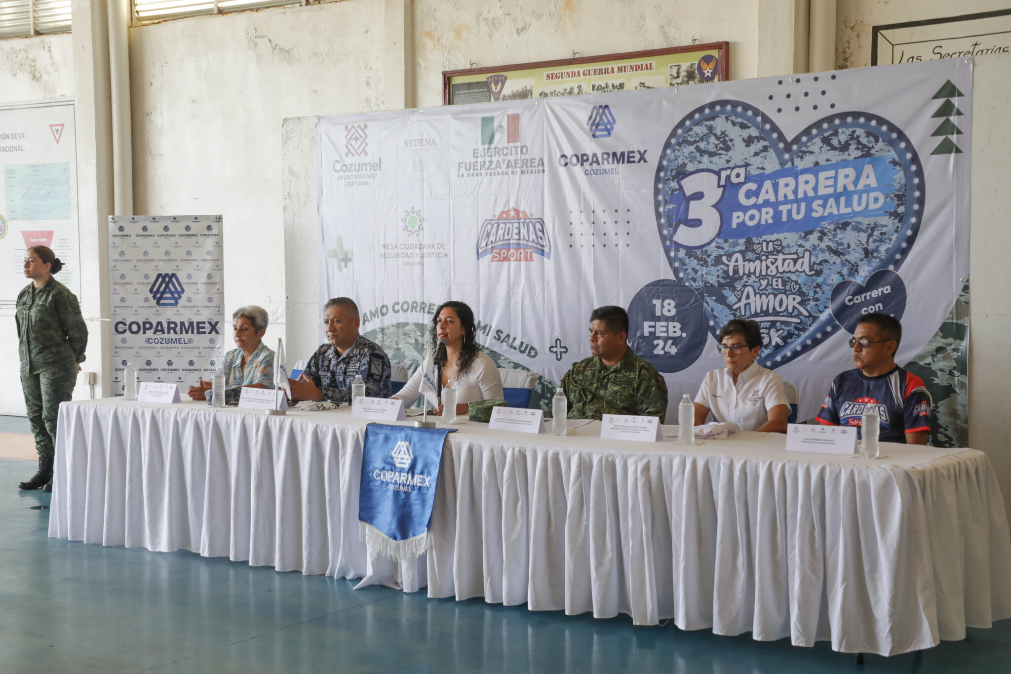 Presentan la III edición de la Carrera por tu Salud, la Amistad y el Amor, evento deportivo con causa para recaudar fondos que serán canalizados para el impulso al deporte popular que se llevará a cabo el próximo domingo 18 de febrero en las instalaciones de la Base Aérea Militar (BAM) #4, organizada por la Confederación Patronal de la República Mexicana (Coparmex) Cozumel, en coordinación con el Gobierno Municipal que preside Juanita Alonso Marrufo, a través de la Dirección de Deportes y Atención a la Juventud.