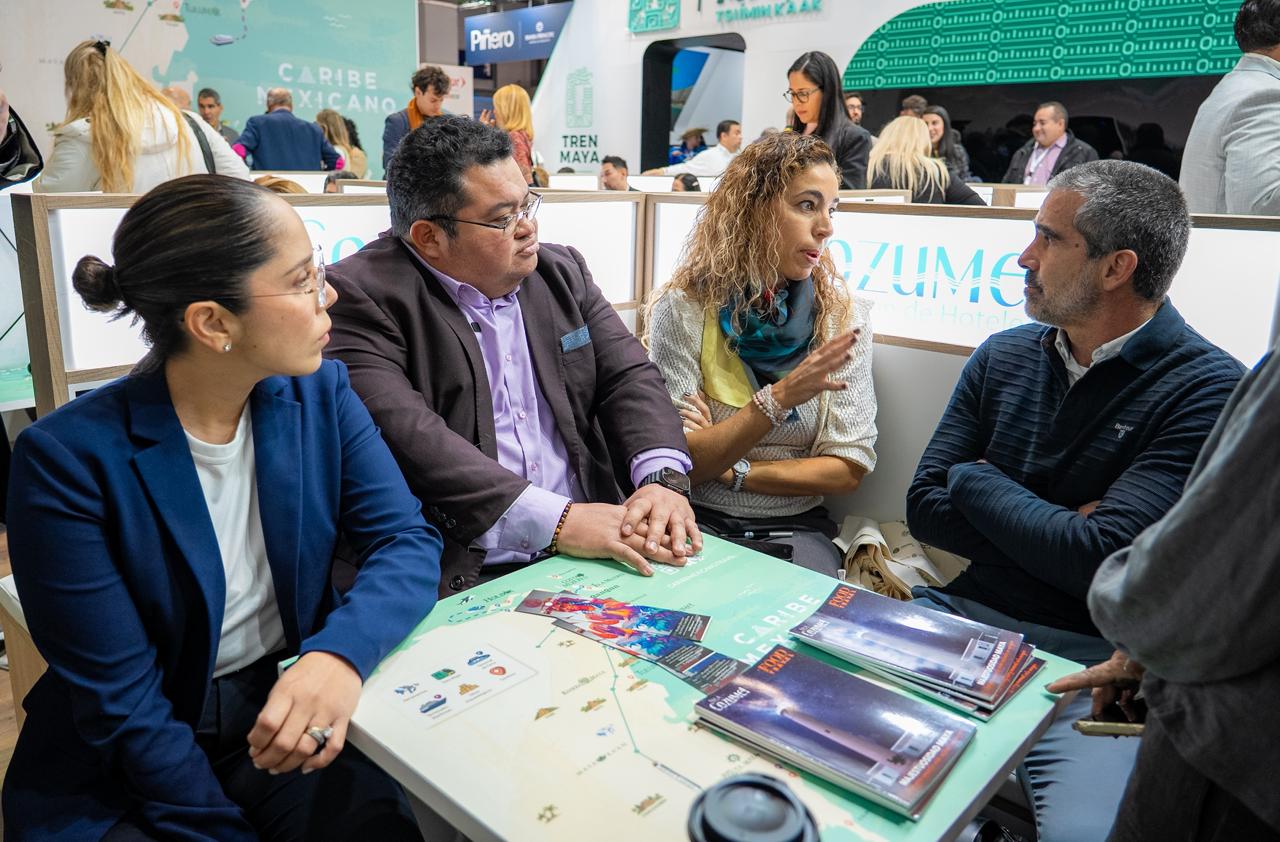 Como parte de su intensa agenda de trabajo en la Feria Internacional de Turismo (FITUR), el presidente municipal José Luis Chacón Méndez, el director de Turismo y Desarrollo Económico, Elías Farah Ceh y Beatriz Tinajero, presidenta de la Asociación de Hoteles de Cozumel, se reunieron con Jaime Cadaval Baeza, presidente de la Federación Mexicana de Triatlón, con el objetivo de afinar detalles relacionados con la organización y logística de los eventos IRONMAN 70.3 y el triatlón ASTRI, competencias emblemáticas que forman parte de la identidad deportiva de la isla y que año con año atraen a atletas y visitantes de diversas partes del mundo.