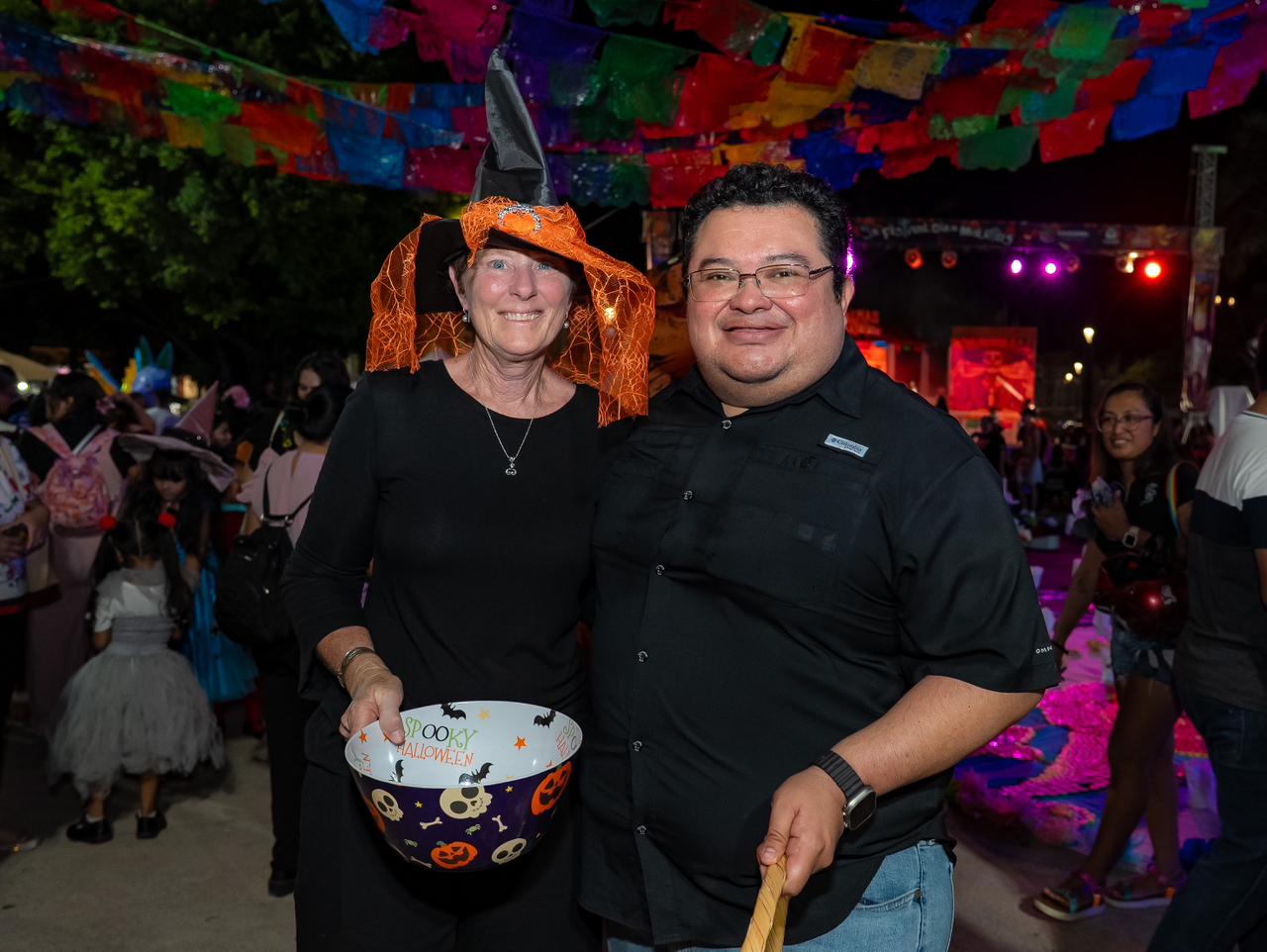 Con el objetivo de impulsar las tradiciones y costumbres locales, el presidente municipal, José Luis Chacón Méndez, acompañado de su esposa, la presidenta honoraria del DIF, Diana Sosa Blanco, participó en el Intercambio de Dulces organizada por Mami Power en Acción en coordinación con el Gobierno de Cozumel. Cientos de cozumeleños y turistas asistieron disfrazados, compartiendo dulces y disfrutando de una velada llena de alegría en el parque Benito Juárez.