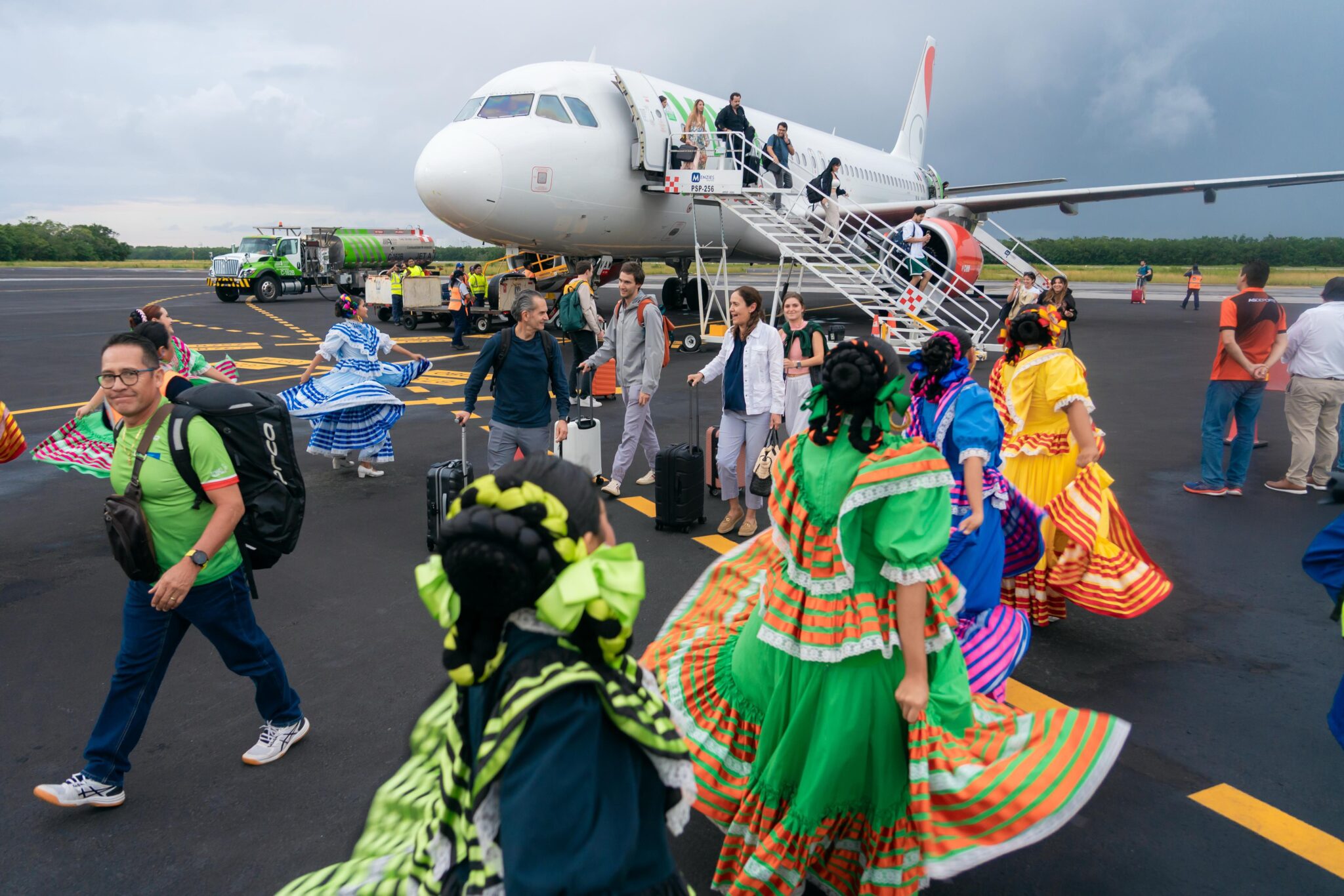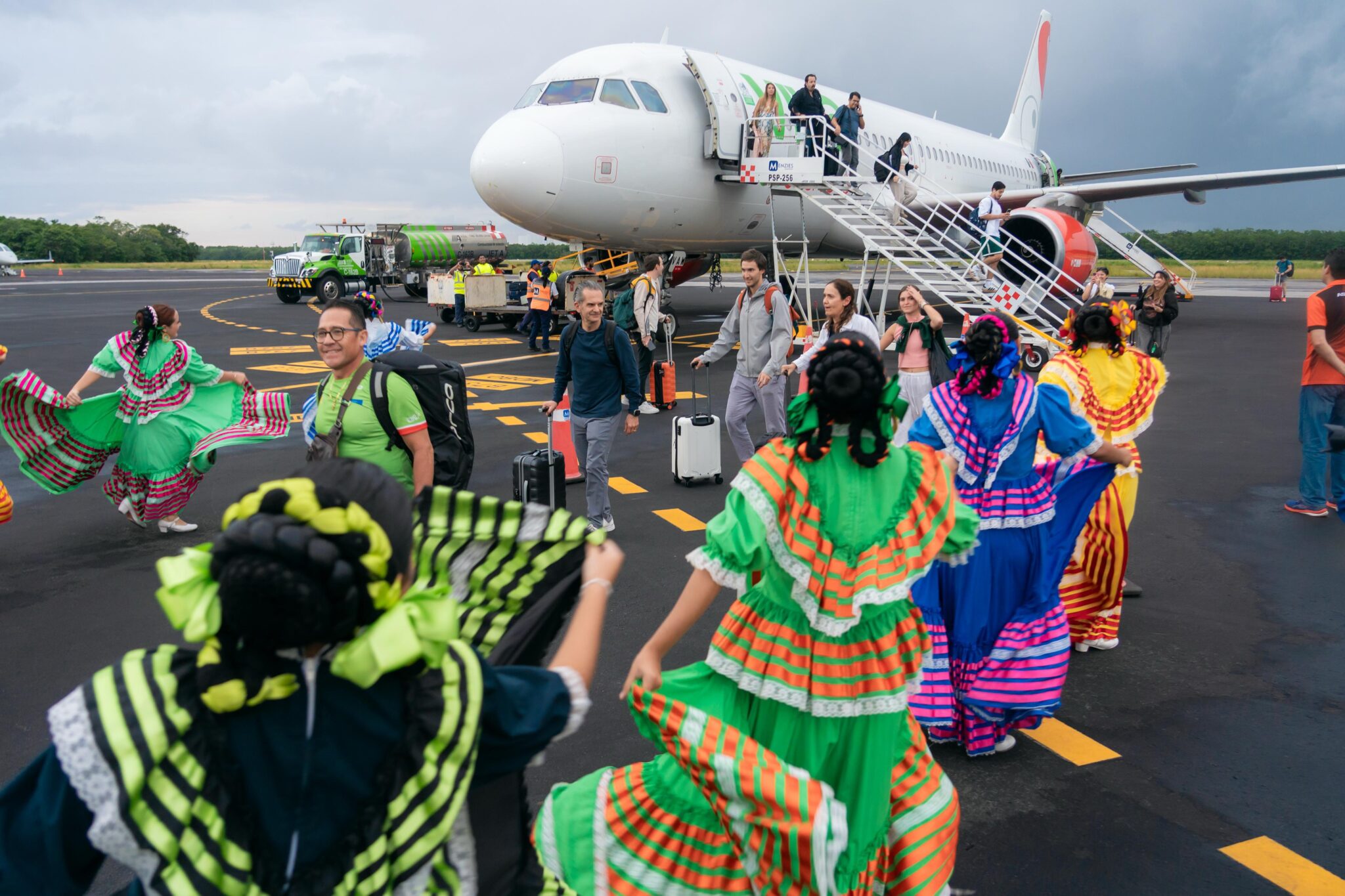 Con música y un colorido baile tradicional a pie de pista, el Gobierno Municipal que preside José Luis Chacón dio la bienvenida este viernes a los pasajeros de los nuevos vuelos de Volaris y Viva Aerobus, coincidiendo con la llegada de atletas y acompañantes que participarán en el IRONMAN 70.3 Cozumel 2025.