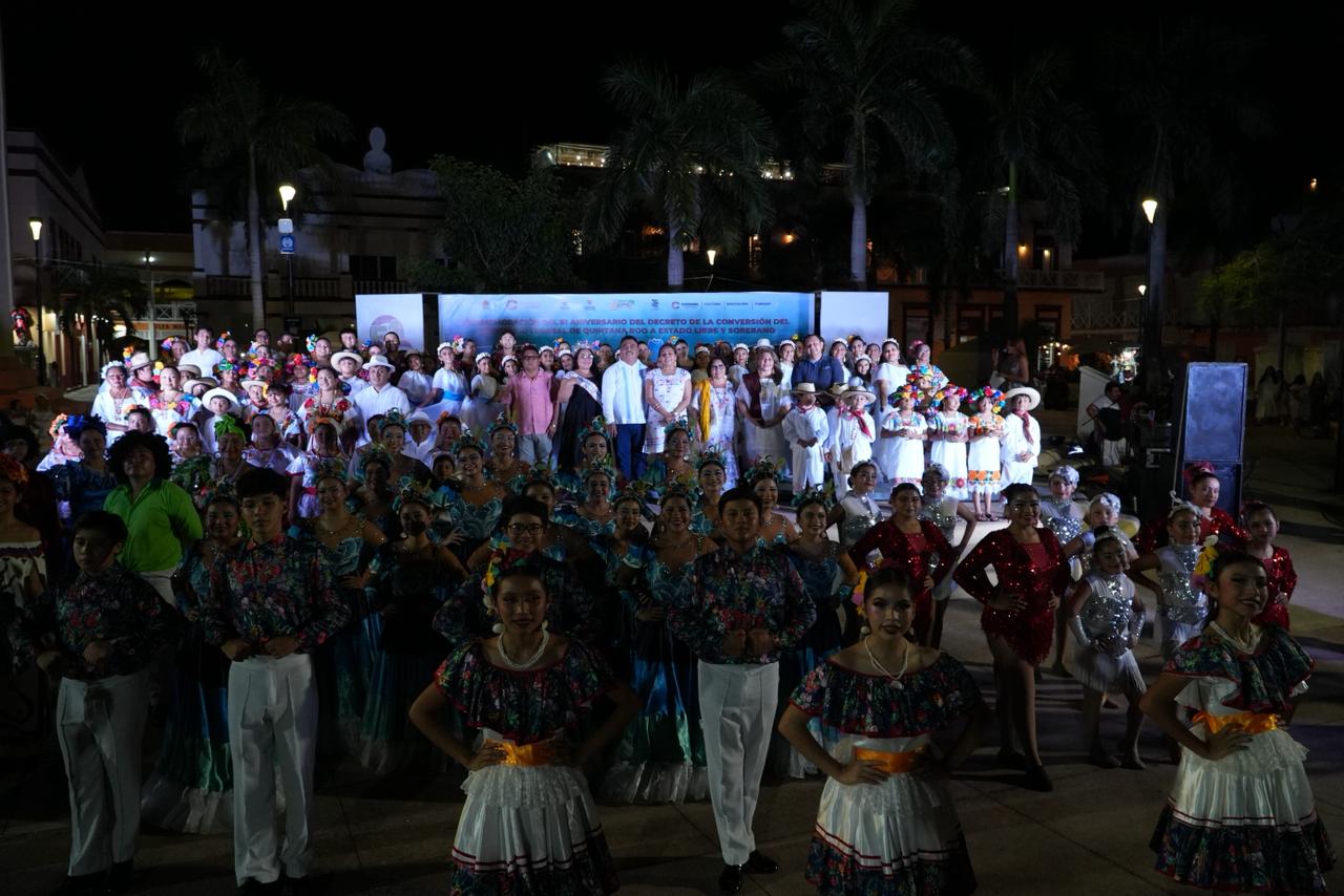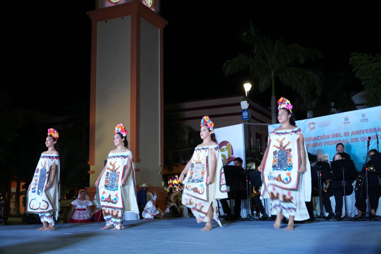 Durante su intervención, Cristina Santana, subdirectora de Cultura, expresó: “Celebrar la historia y la identidad de Quintana Roo es celebrar la vida e historia de cada uno de los que vivimos en este bello estado. Es celebrar su música, sus danzas, sus bailes, su gastronomía, sus artesanías y su rico y variado folclor. Con ello promovemos el patrimonio cultural y las bellezas naturales de nuestro pueblo mágico, pero, sobre todo, celebramos a su gente alegre, llena de sabor, pasión y calidez humana”.