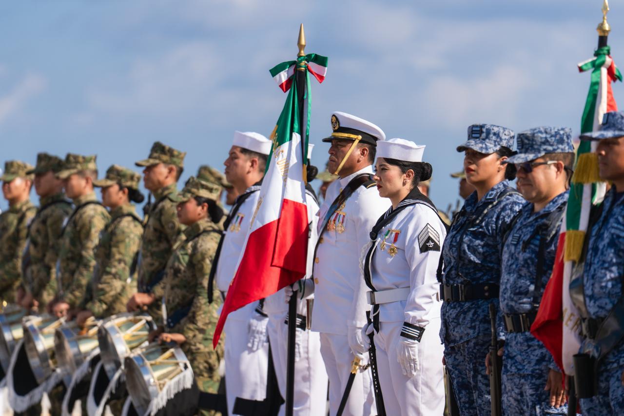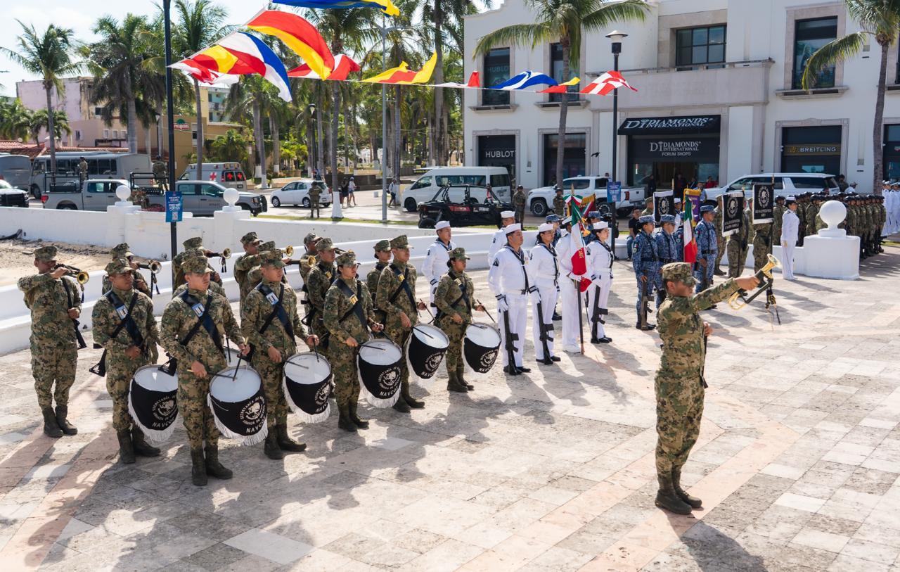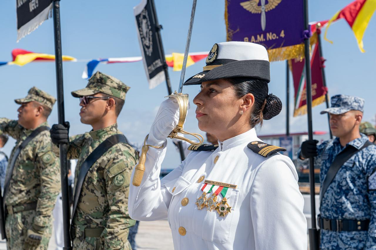 Como parte del programa, se llevó a cabo la reseña histórica a cargo del capitán de navío del Sector Naval, Pedro Mata Cervantes, quien recordó que 128 hombres del mar pertenecientes a la Escuela Naval Militar defendieron a México durante los hechos históricos del 21 de abril de 1914, destacando su valor, disciplina y amor a la patria.