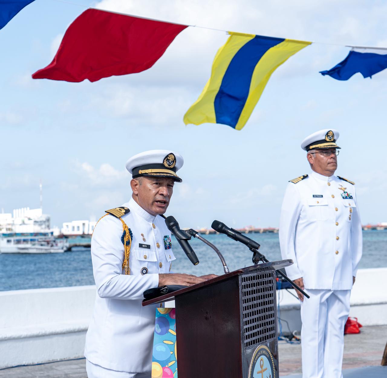 En la ceremonia estuvieron presentes el contralmirante, Armando Toscano Yañez, comandante de la Guarnición Militar; en representación de la presidenta municipal de Playa del Carmen, el director de Asuntos Internos de la Secretaría de Seguridad Ciudadana, Rodolfo López Zapata; el general de grupo piloto aviador diplomado del estado Mayor, Román Eduardo Aljuria Benavidez, comandante de la 18va. Zona aérea militar; Capitán de navío infantería de Marina paracaidista, Gerardo Estrada Hernández, comandante del batallón de infantería No. 552; Alfredo Rodríguez Fritz, representante de Pilotos de Puerto y el capitán de navío, Adrían Valdovinos Vázquez, comandante de la Unidad naval de Protección portuaria.