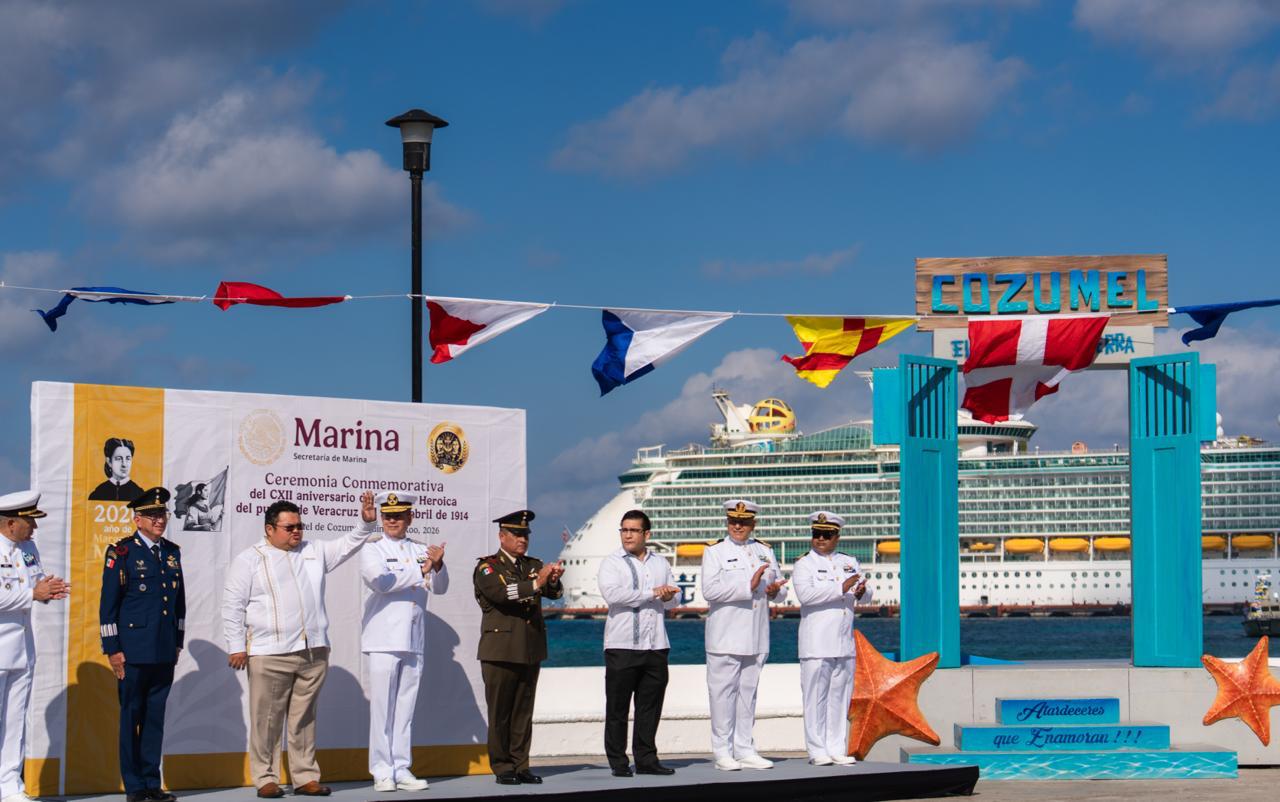 El presidente municipal, José Luis Chacón Méndez, asistió como invitado de honor a la ceremonia conmemorativa del CXII Aniversario de la Gesta Heroica del Puerto de Veracruz del 21 de abril de 1914, realizada por el Sector Naval en la explanada de la bandera, donde autoridades civiles y militares rindieron homenaje a los marinos que defendieron la soberanía nacional.